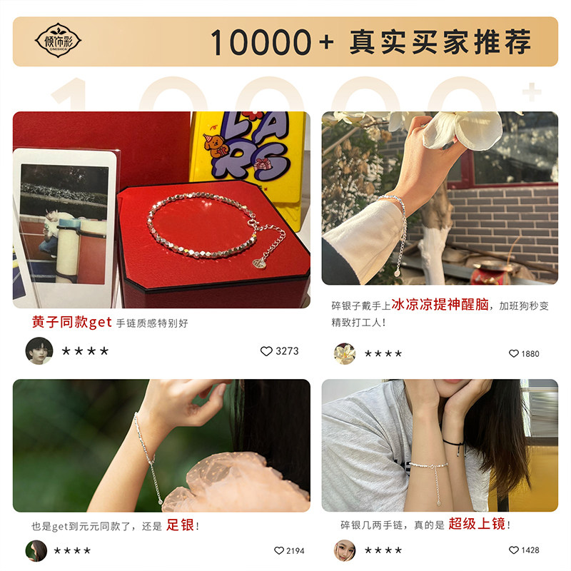 碎银几两纯银手链女生款999足银碎银子银手镯银饰生日礼物送女友