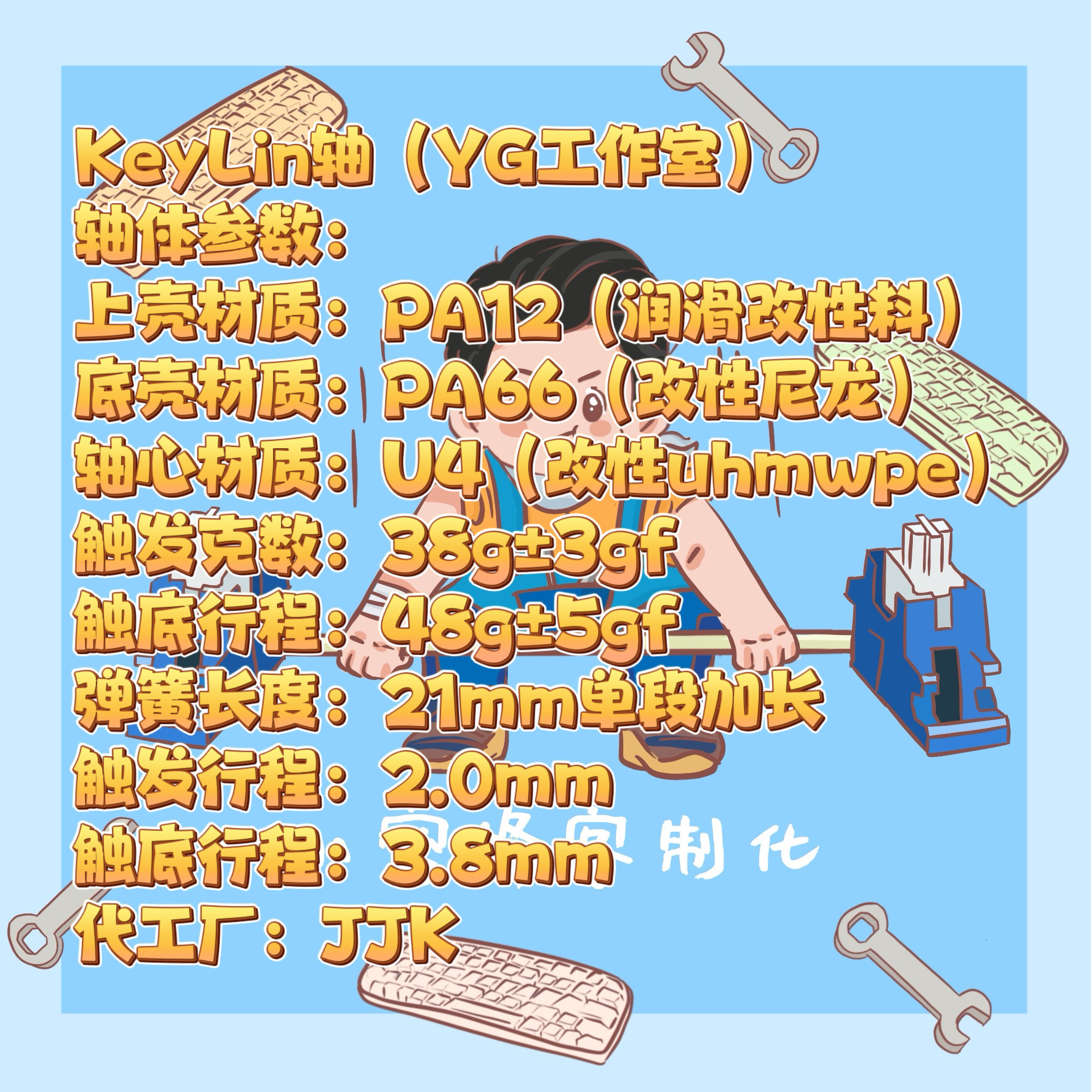 KeyLin轴YG工作室 客制化机械键盘轴体 无润 厂润 米勒3204手润版