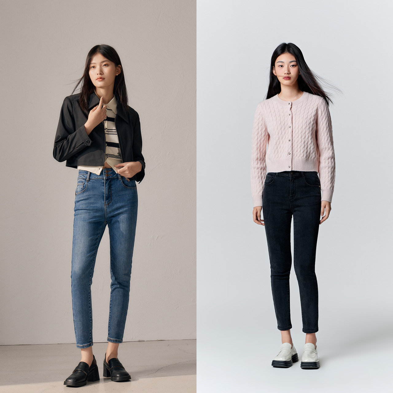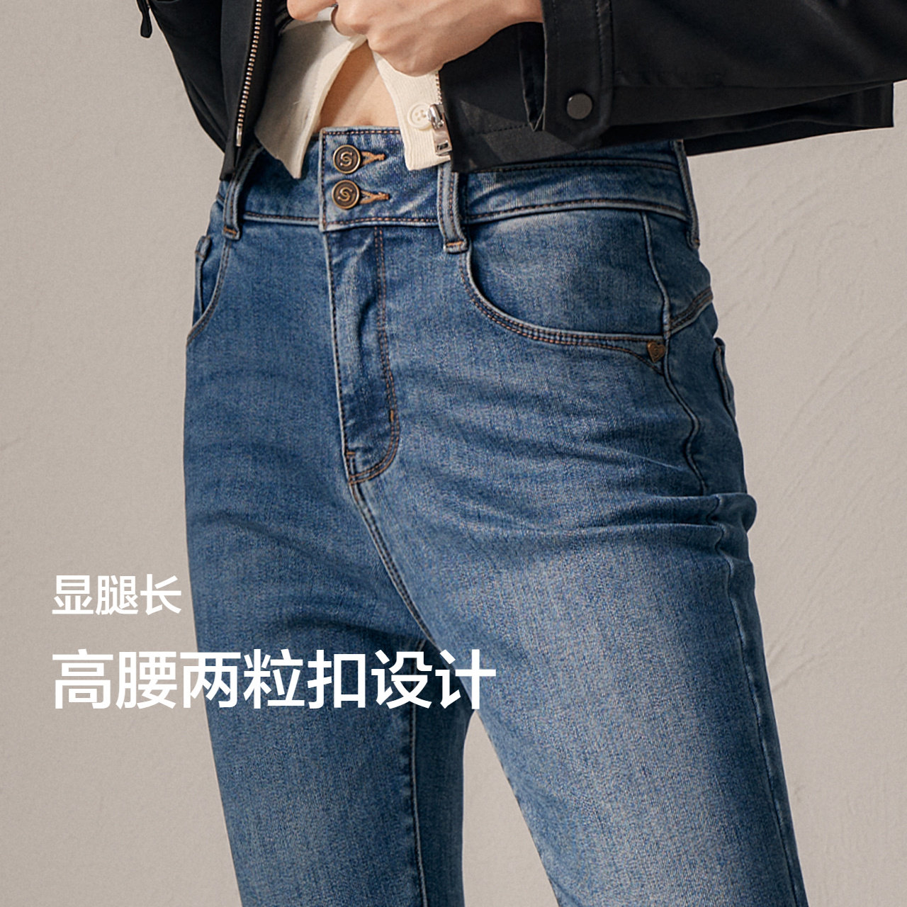 高腰线显腿长 柔软抓绒 仅牛仔蓝灰保暖功能