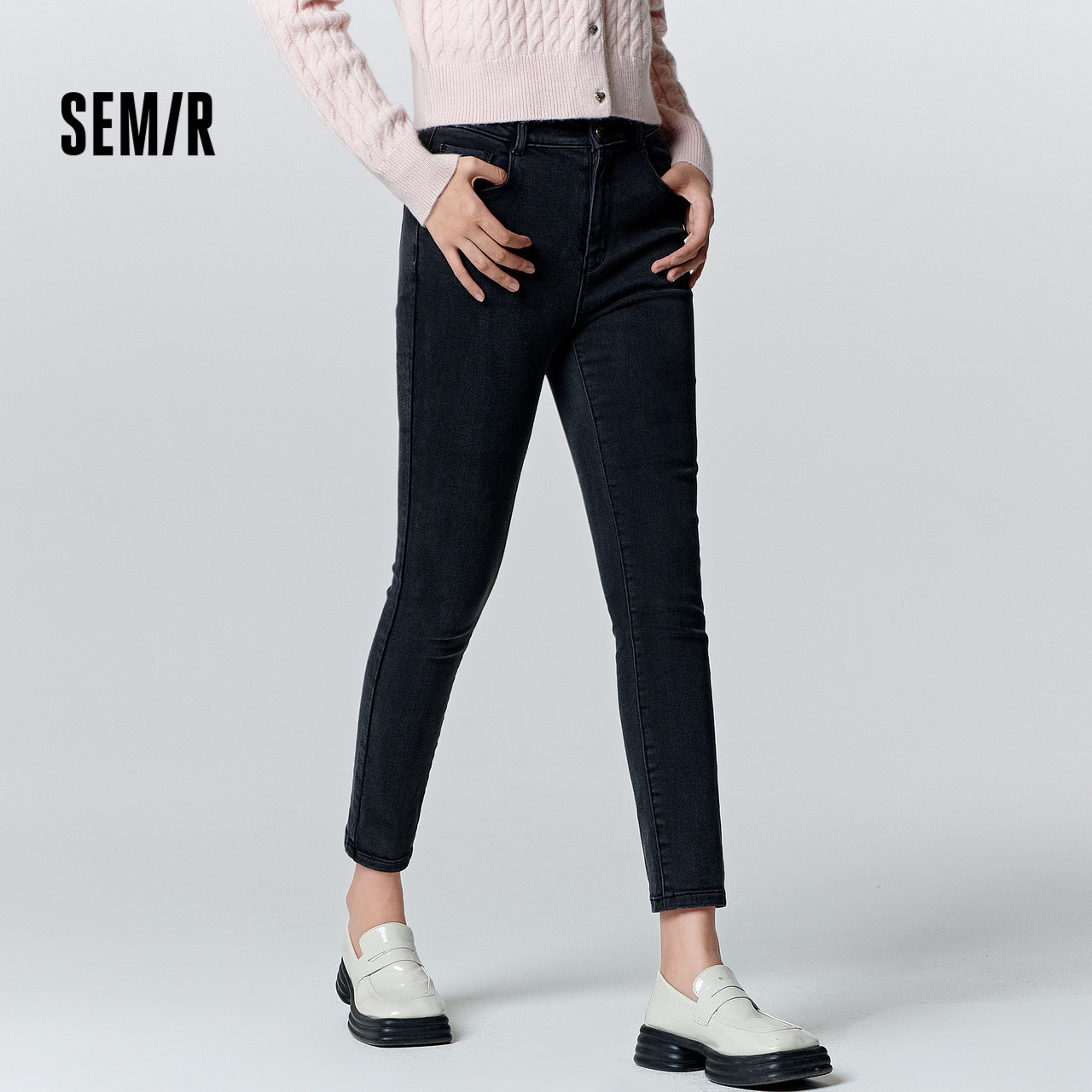 森马牛仔裤女高腰小脚裤小个子显瘦冬保暖修身抓绒长裤显腿长韩版