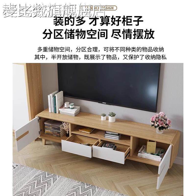 麦比梵原木色茶几电视柜组合客厅家用小户型新中式简约现代实木框影视柜床笠拉车