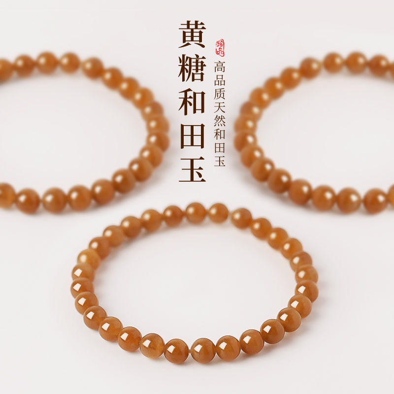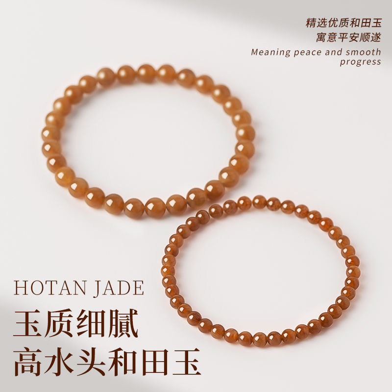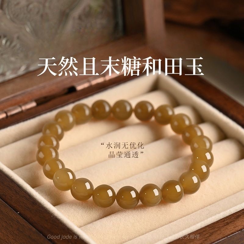 VZZS普陀山天然真品和田玉藕粉手串高冰收藏级女款手链本命年珠