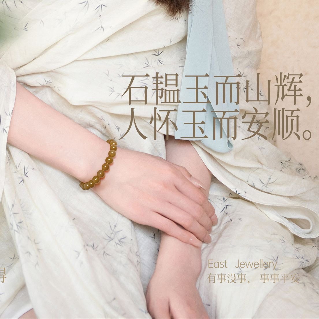 周大生福运莲莲碎银子手链女款纯银和田玉轻奢小众生日礼物送女生