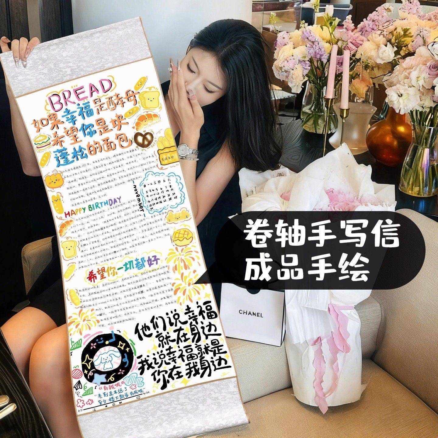 手写信纸卷轴半成品hellokitty自带图案纪念意义表白现代装饰画