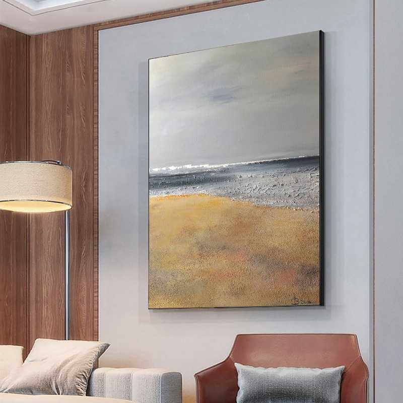 手绘油画黄金海岸现代客厅玄关背景墙装饰画轻奢抽象餐厅走廊挂画