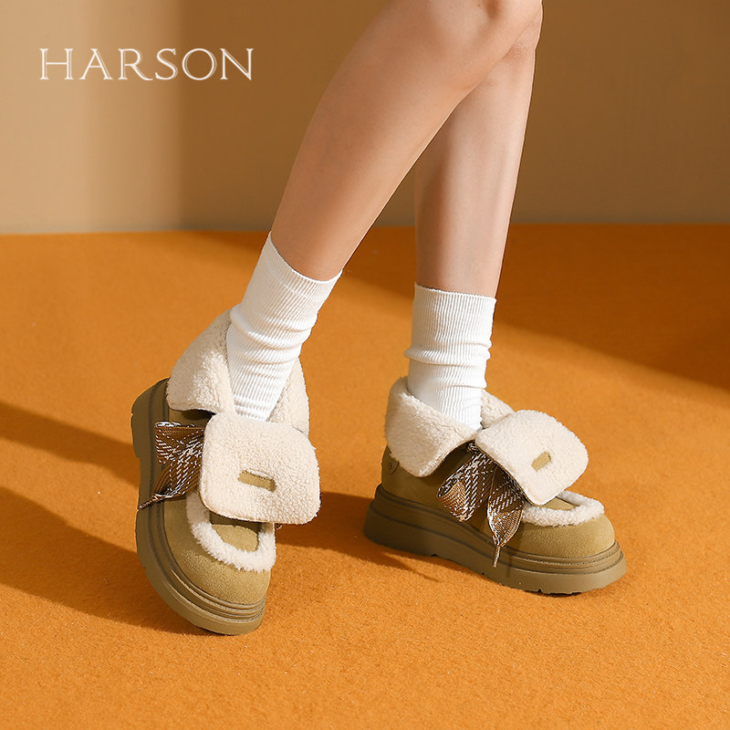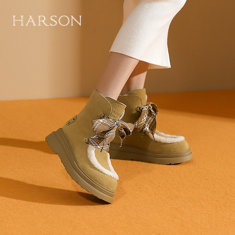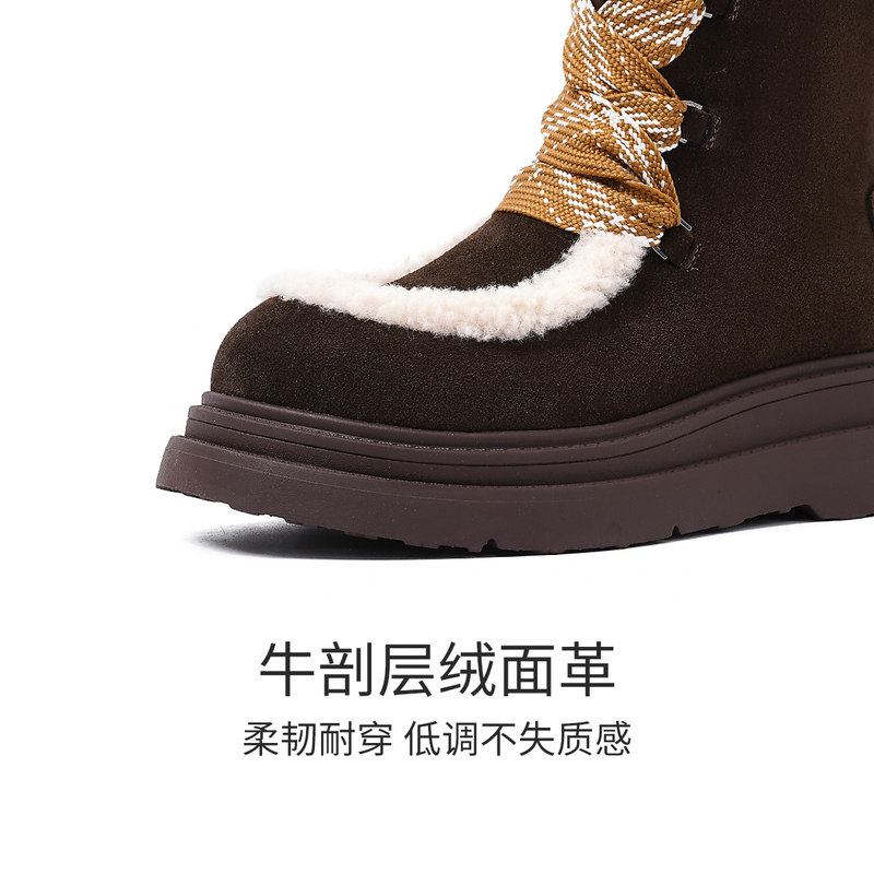 哈森减龄系带雪地靴女冬季新款加绒休闲运动毛毛鞋HWA240187