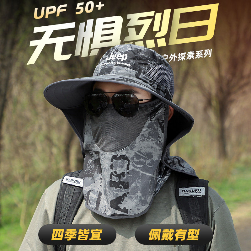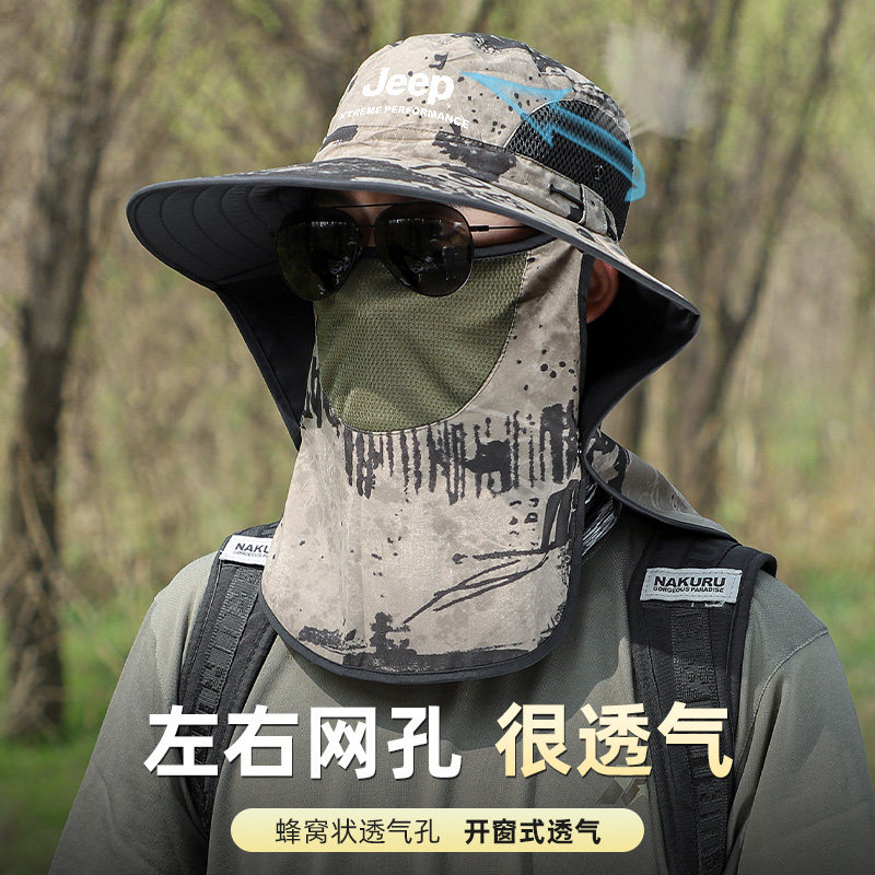 jeep吉普帽子男夏天透气遮脸太阳渔夫遮阳夏季户外登山男士防晒帽