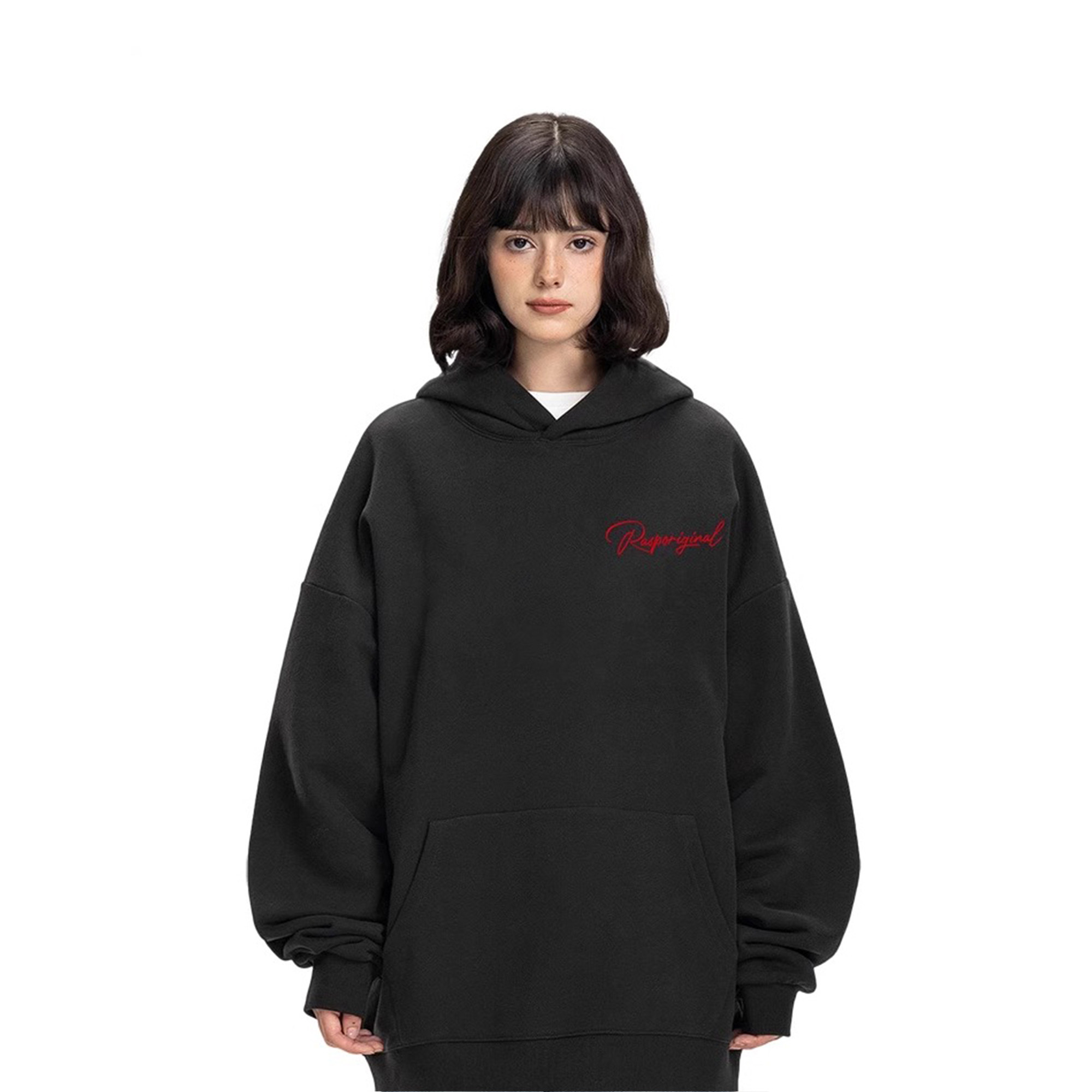 RASP花体LOGO连帽卫衣男国潮牌春秋季加绒美式重磅高街情侣男帽衫
