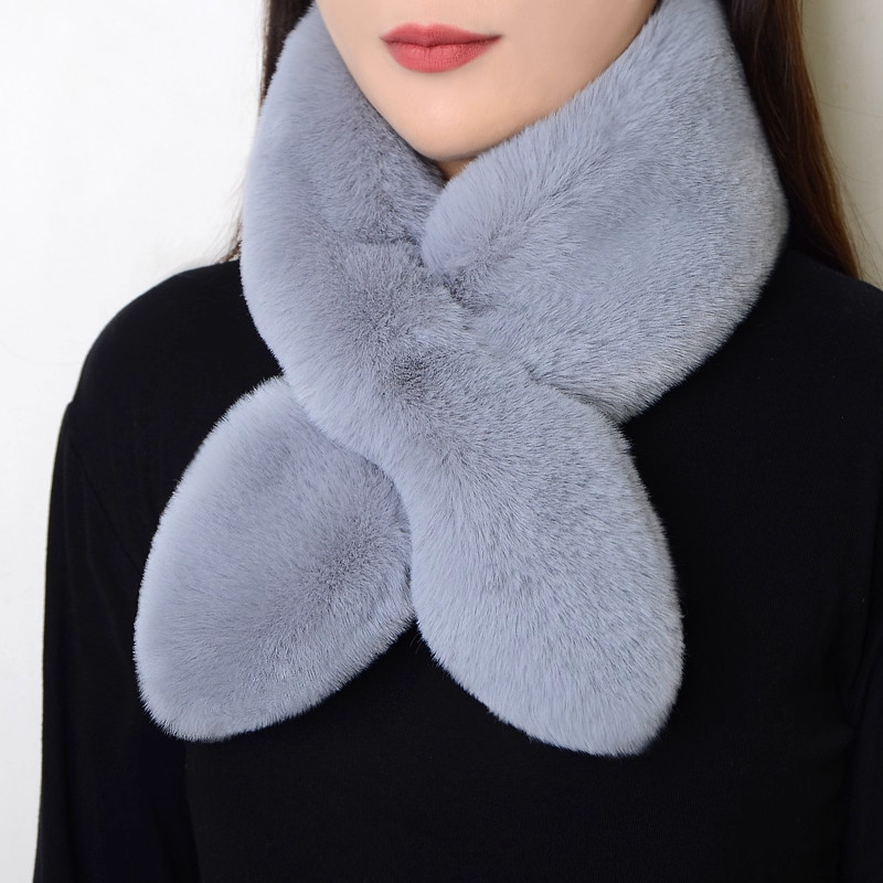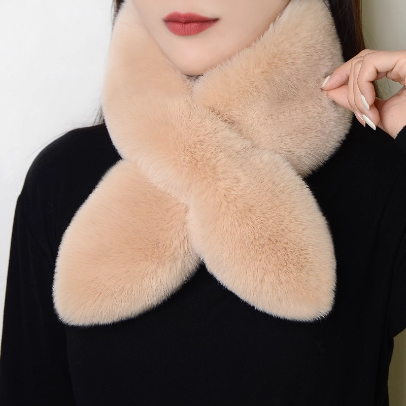 围巾女冬款加厚保暖仿獭兔毛围脖百搭护颈毛绒交叉围巾男女士通用