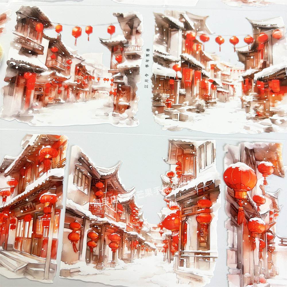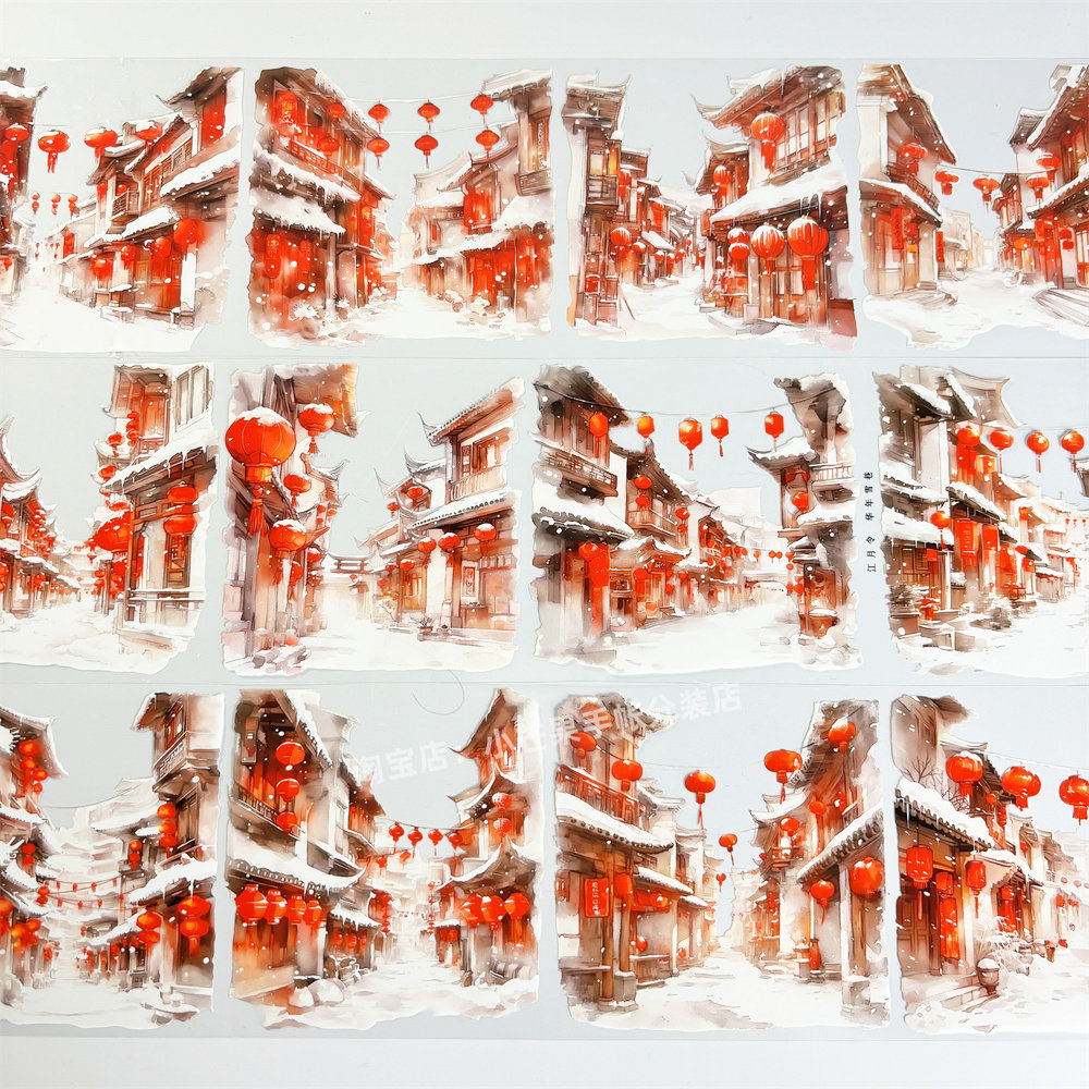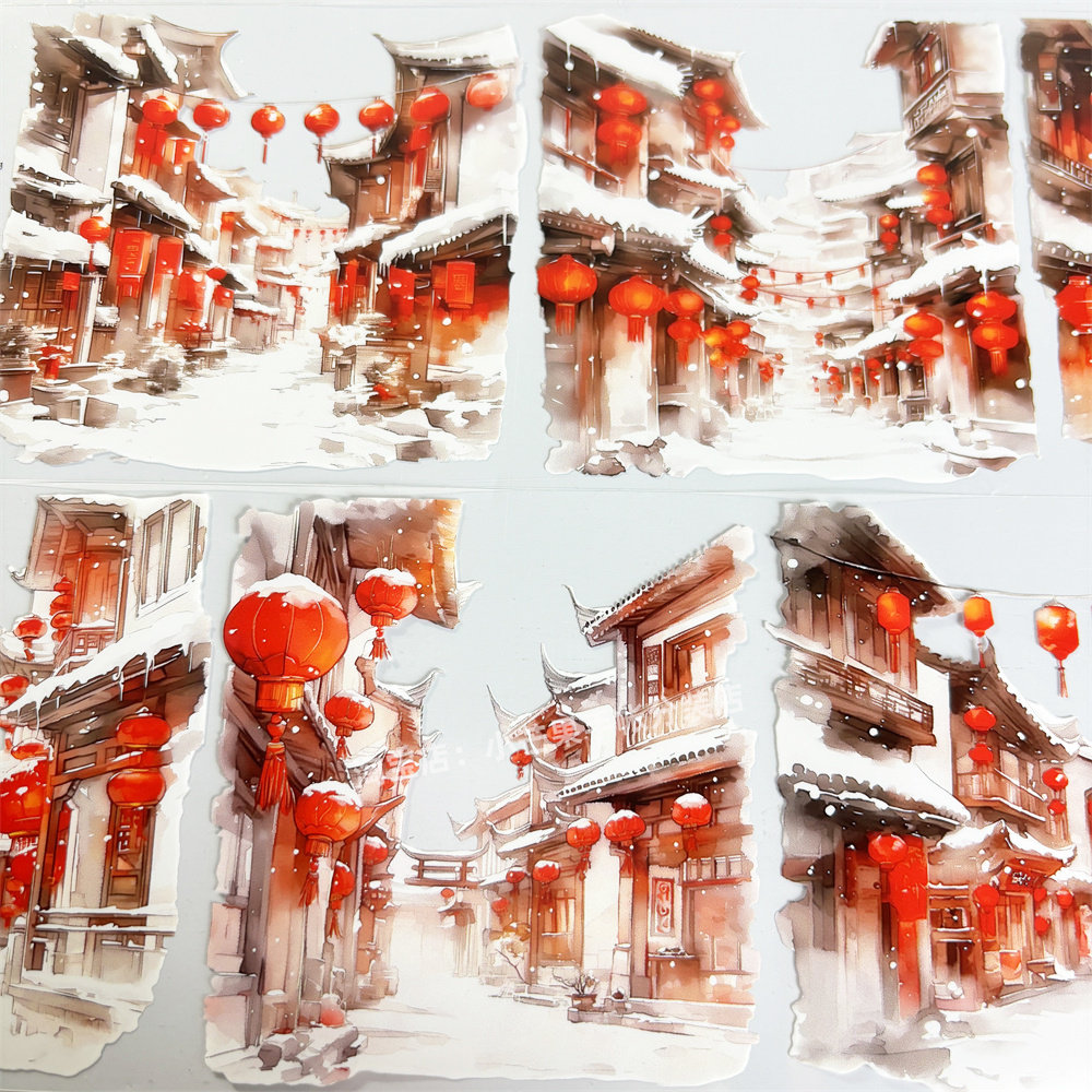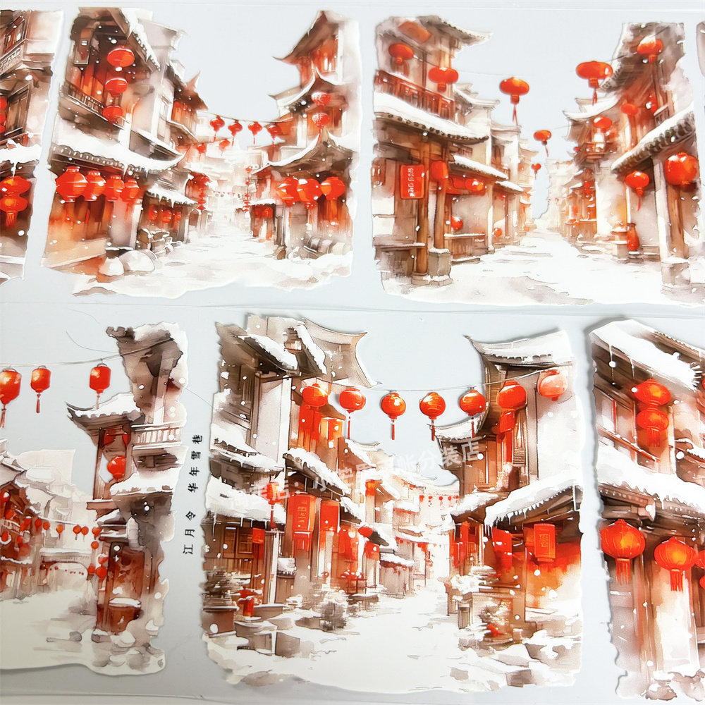 手帐分装胶带华年雪巷江月令街道灯笼古风PET素材账手机壳贴纸