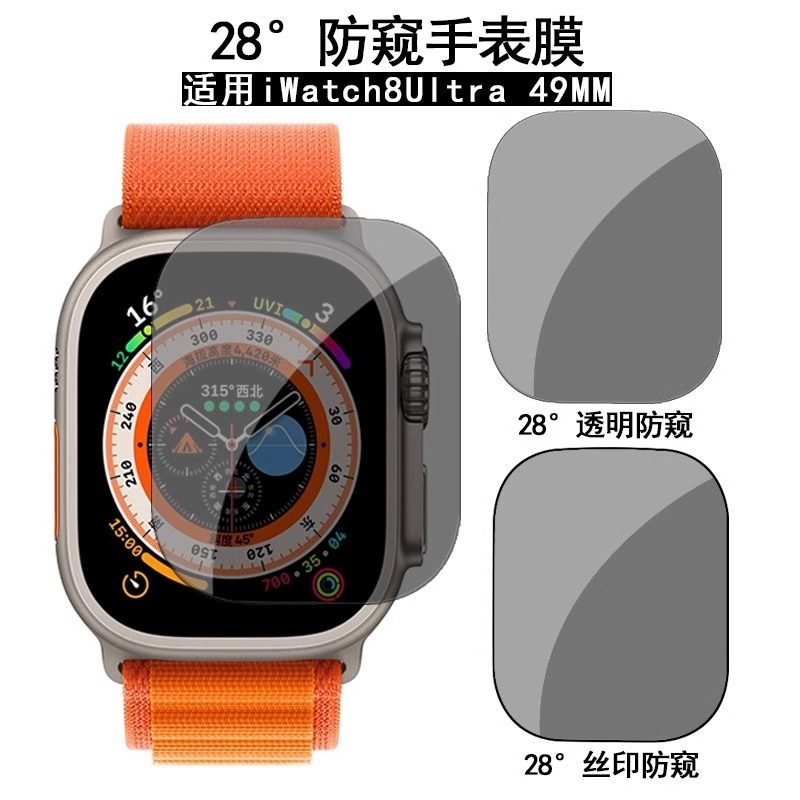 朝凰适用苹果Apple Watch Ultra2钢化膜ultra手表膜49mm高清防窥表盘防偷窥玻璃防爆耐刮防摔智能表保护贴膜