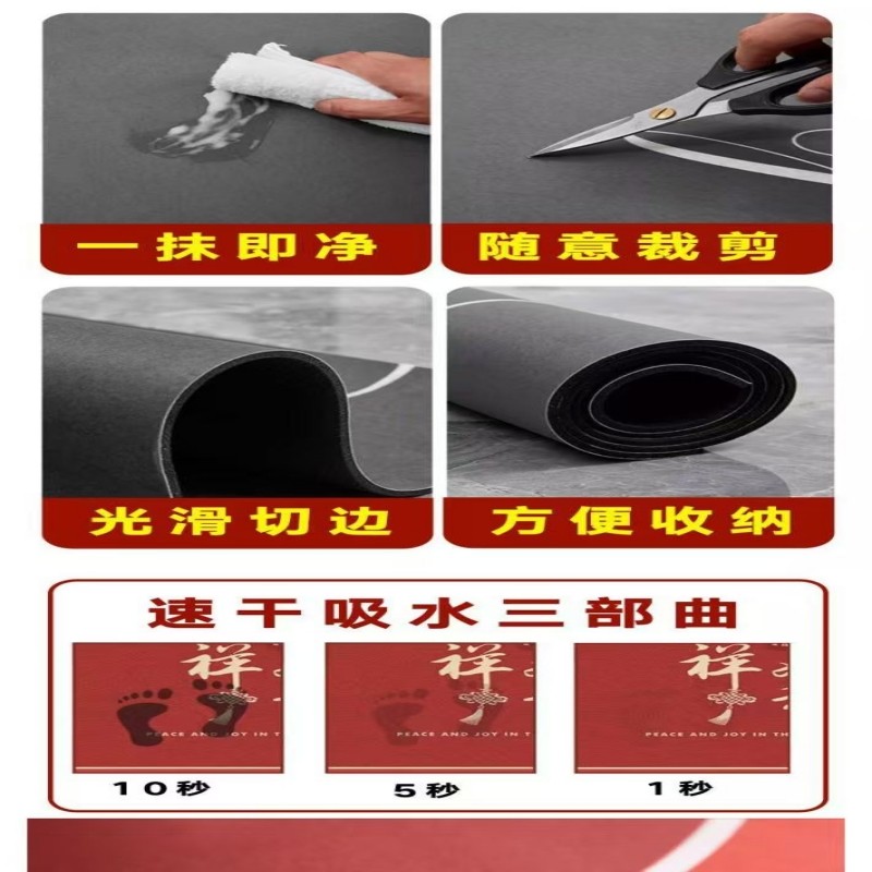 硅藻泥地垫入户门垫红色进门脚垫家用耐脏防滑垫喜庆新房门口地毯