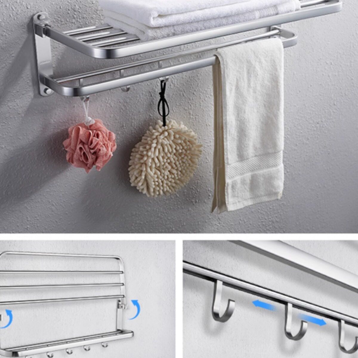 【谢霆锋推荐】佳帮手毛巾架免打孔浴室卫生间置物架一体折叠套装