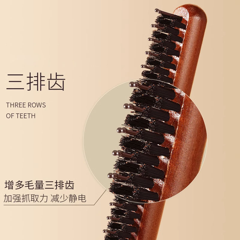 猪鬃毛窄齿梳美发三排打毛梳子蓬松造型长柄化妆尖尾盘发卷发木梳