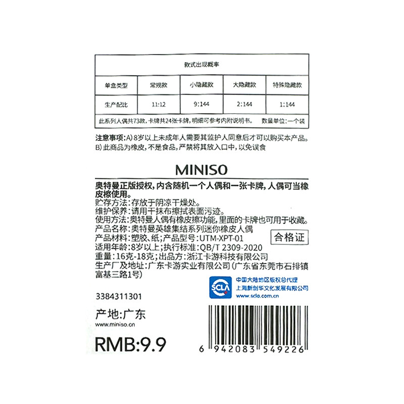 MINISO名创优品奥特曼英雄集结系列迷你橡皮人偶学生学习儿童礼物