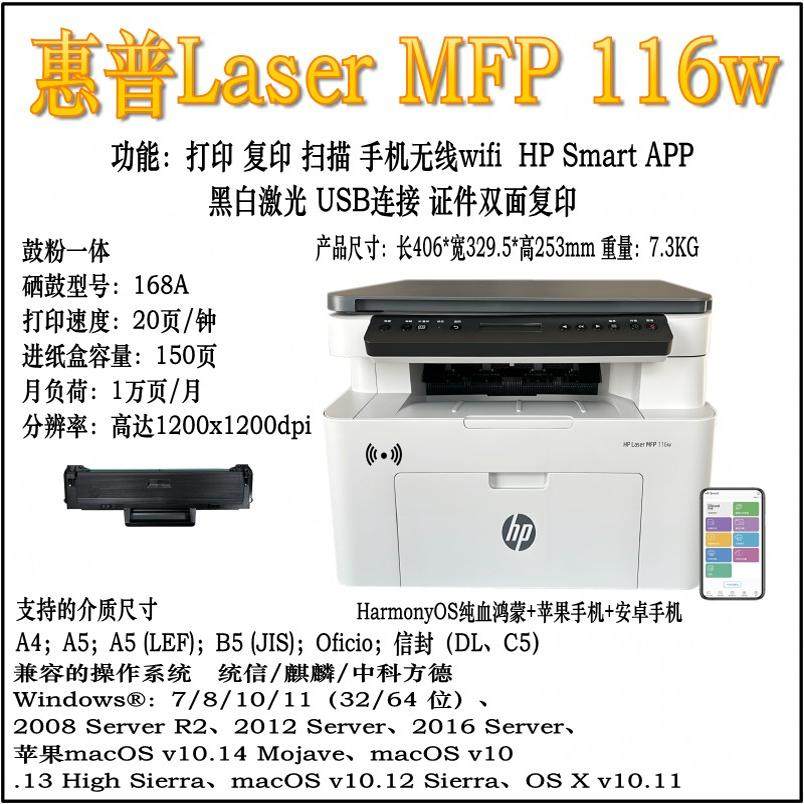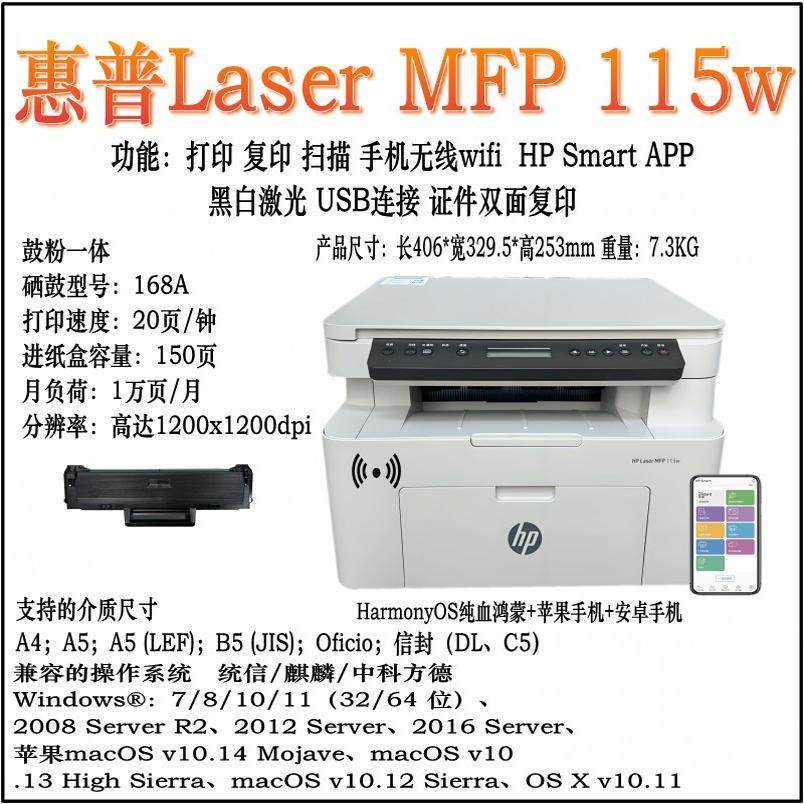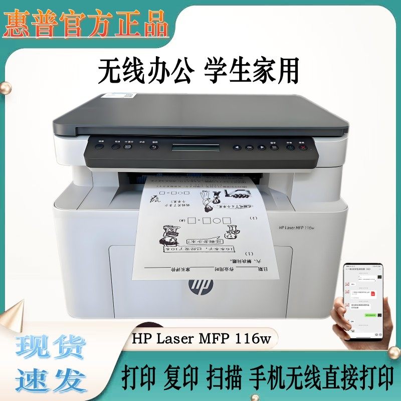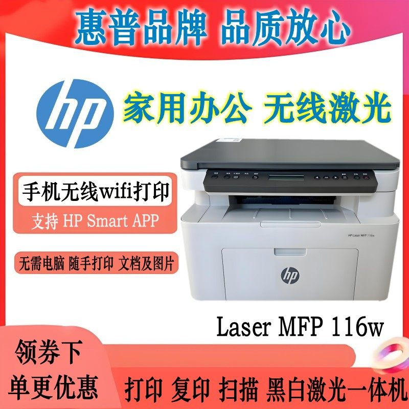 HP惠普115W/116W/117W黑白激光一体机复印扫描办公家用无线打印机