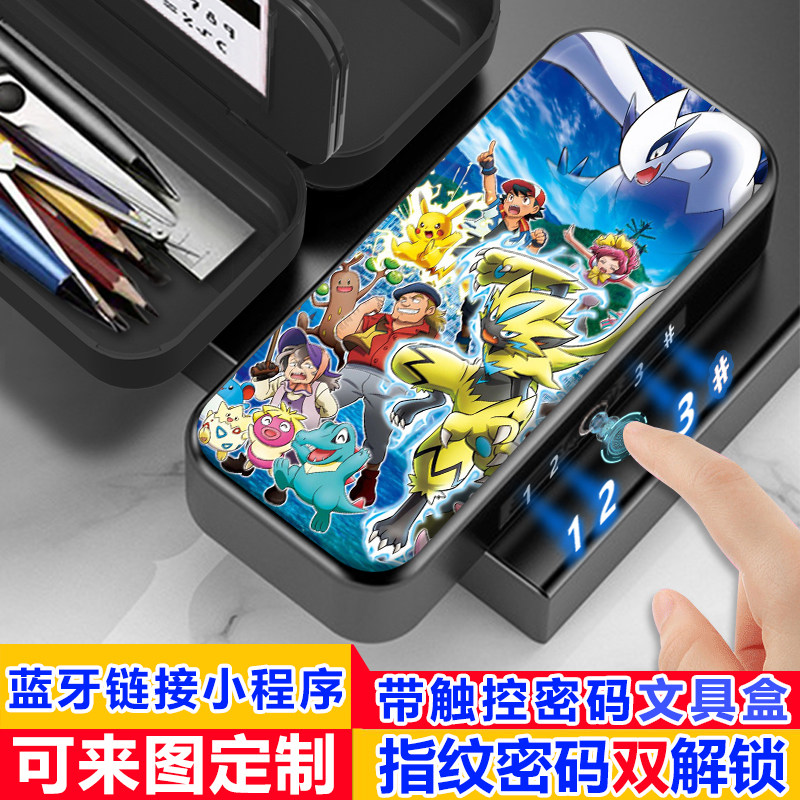 精灵宝可梦皮卡丘指纹密码双解锁文具盒小学多功能男女黑科技笔盒