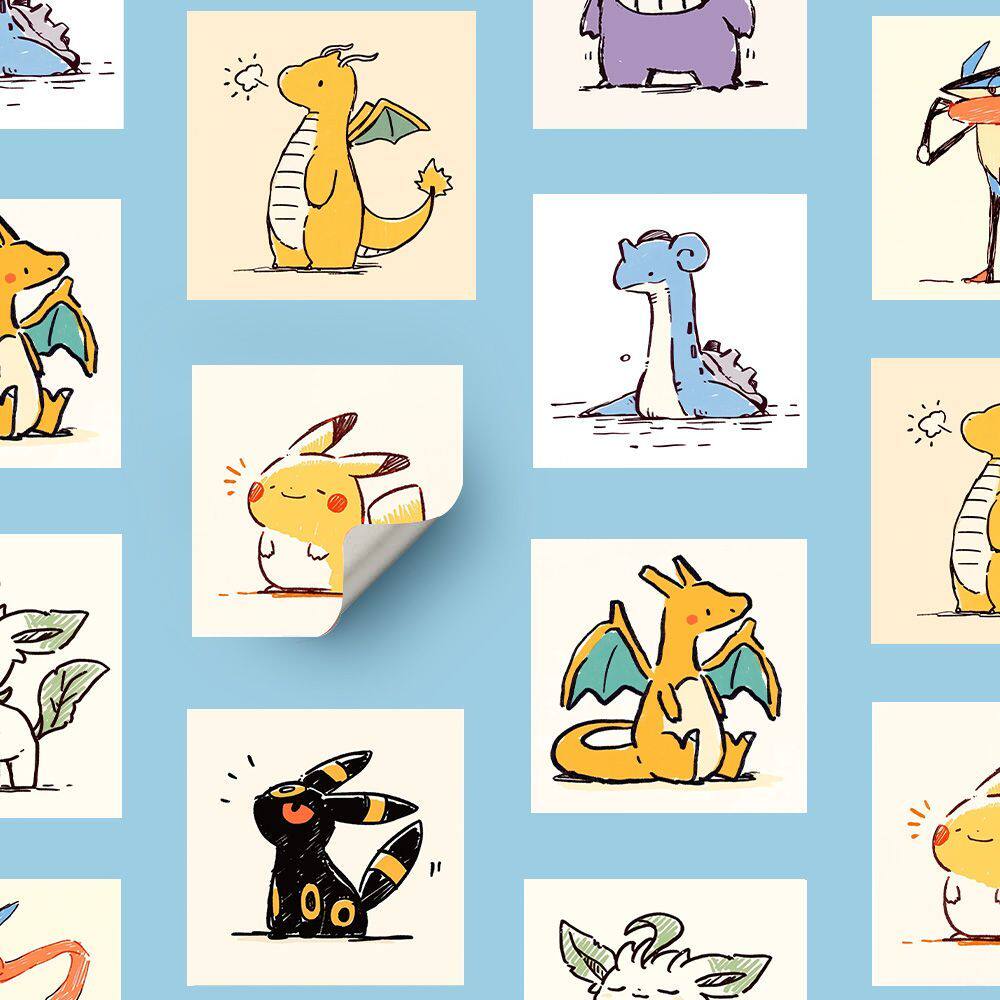 1620张diy宝可梦贴纸卷卷贴Q版卡通可爱皮卡丘喷火龙装饰防水贴画