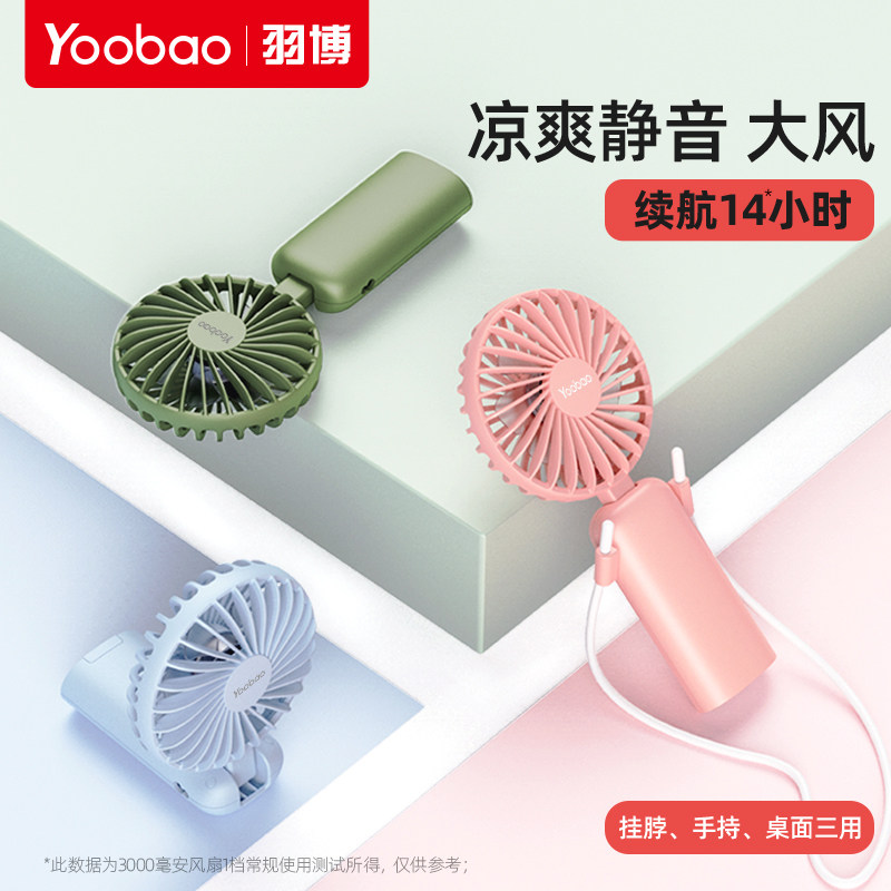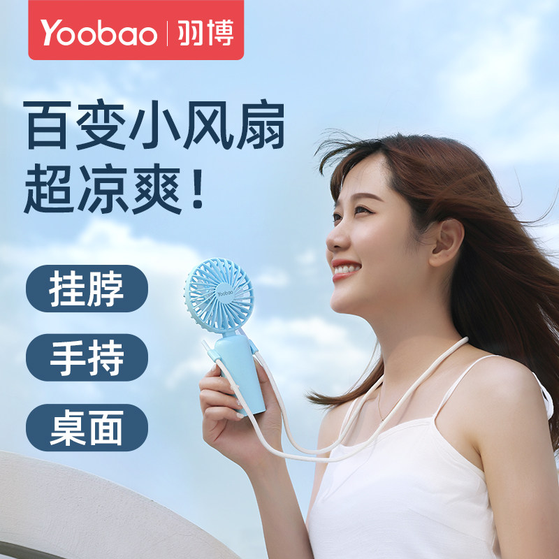 羽博小风扇便携式随身小型挂脖风扇儿童手持学生宿舍迷你折叠usb充电风扇大风力办公室桌面工位风扇超长续航