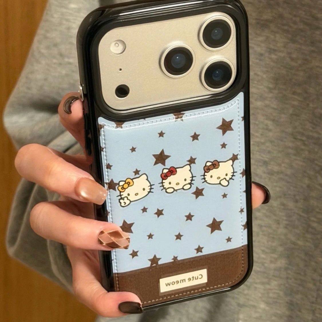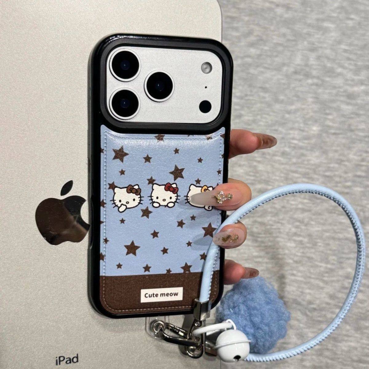 蓝底凯蒂猫适用iPhone17手机壳苹果16promax卡通Hello Kitty星星15plus仿皮14/13/12/11保护壳女可爱6/7/8P