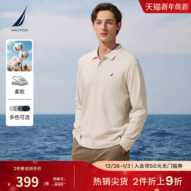 【全棉透气】NAUTICA/诺帝卡男装25秋季柔软多色长袖POLO衫KO5301