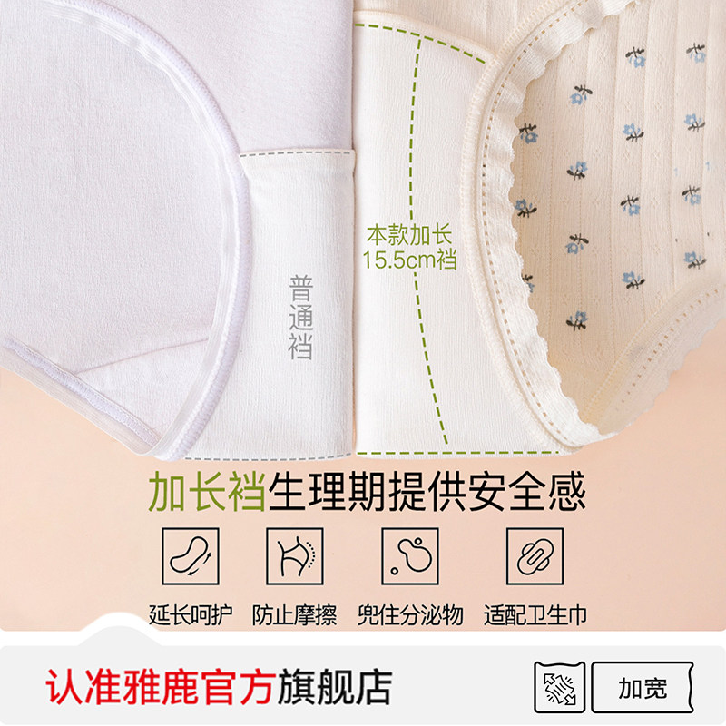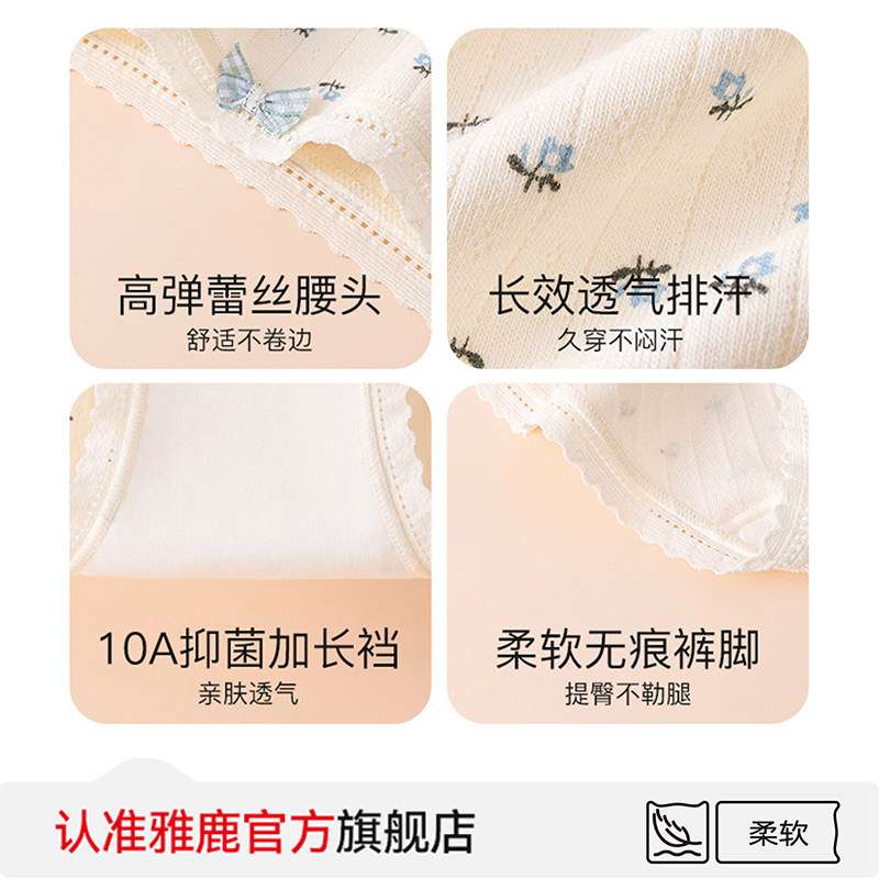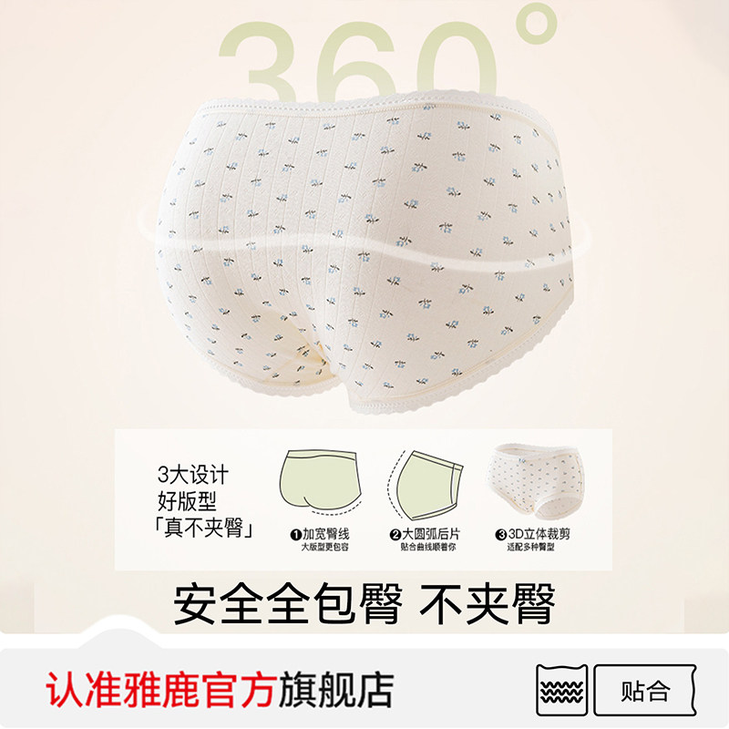雅鹿纯棉内裤女士2026新款100全棉a类抗菌加长档女生绝美三角短裤