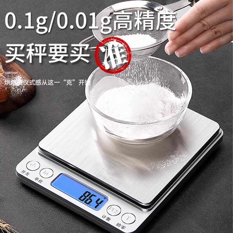 高精度电子秤精准厨房秤小型家用0.1g天平秤克数称食物秤黄金称重