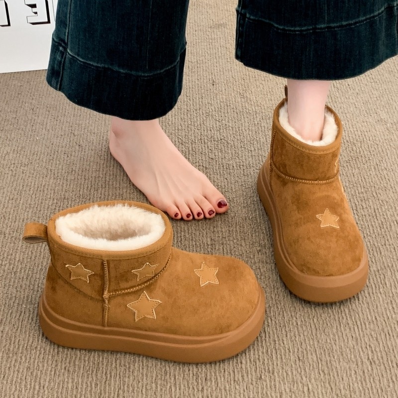 复古星星厚底雪地靴女款2025新款冬季加绒加厚保暖短靴软底棉鞋子