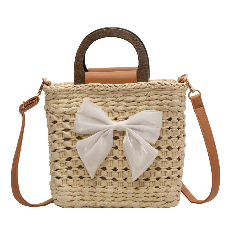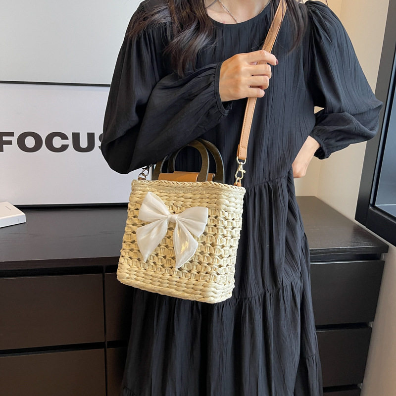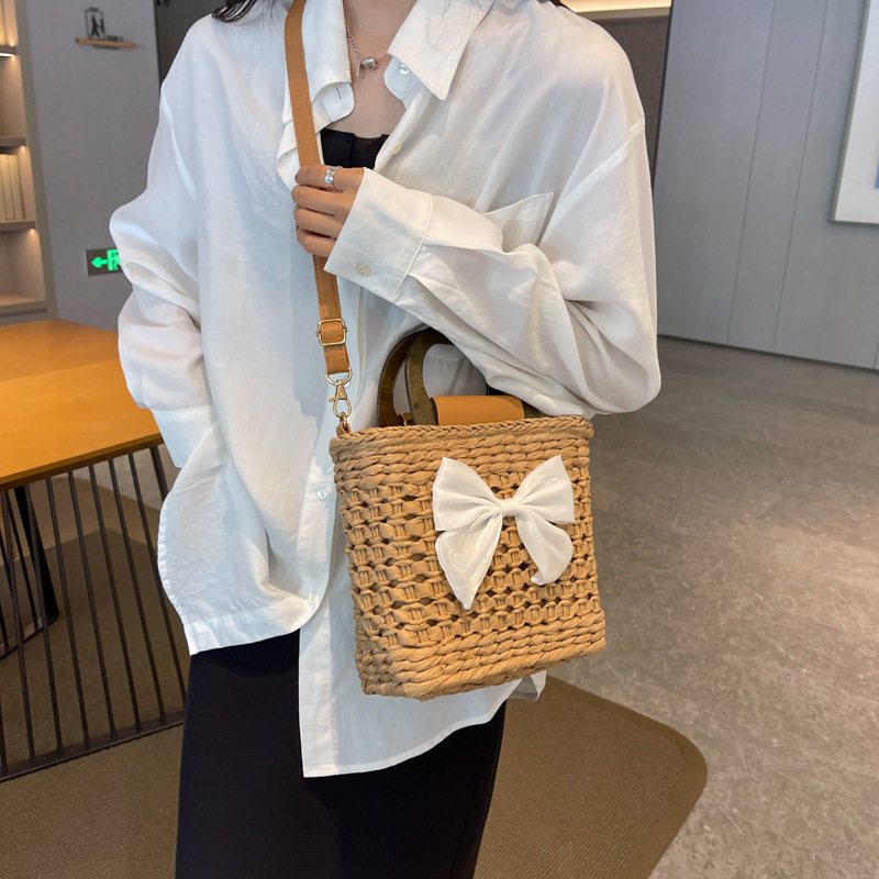 质感小众草编包包2023新款女包夏天时尚沙滩包镂空斜挎包水桶包