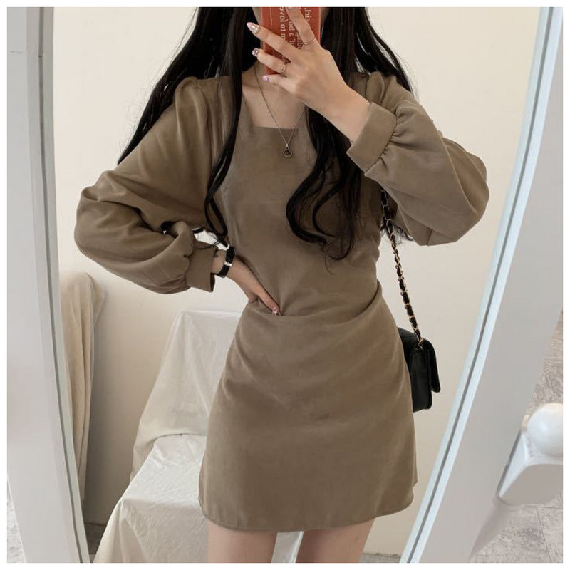 LE真维斯女装2025秋季新款韩版潮流复古收腰显瘦小个子连衣裙