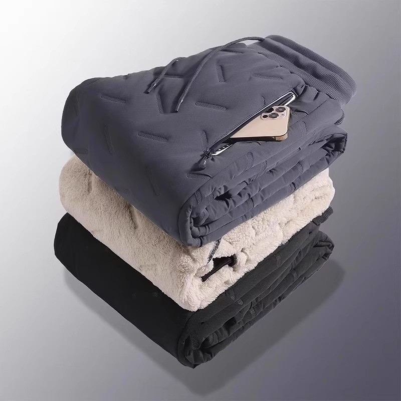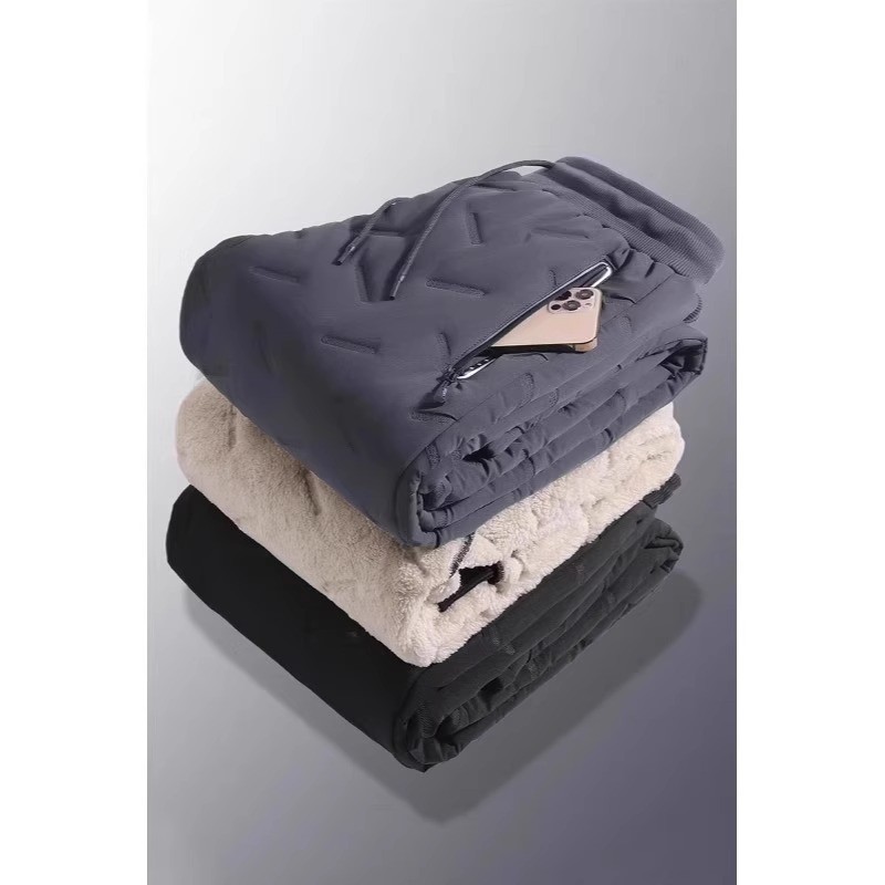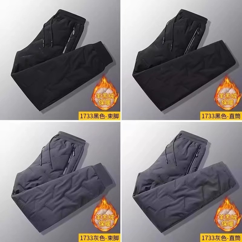 保暖裤男士冬季羊羔绒加绒加厚男款外穿束脚防风防寒直筒羽绒棉裤