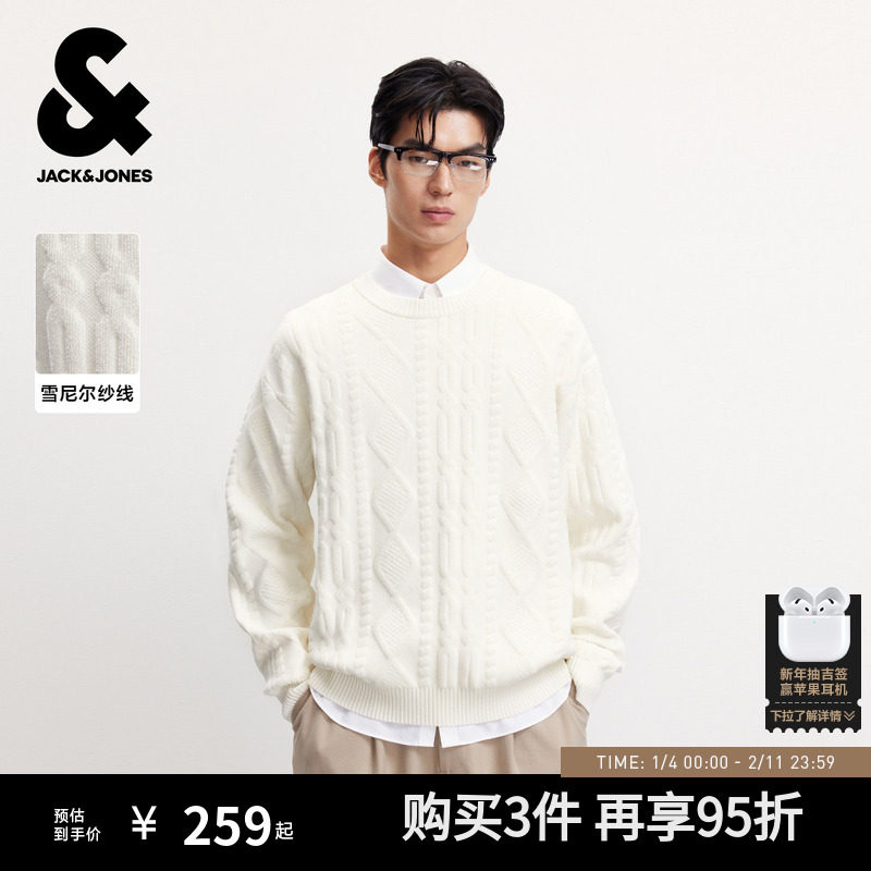 【肌理感面料】杰克琼斯男装秋新款绒感雪尼尔毛衣立体织花针织衫