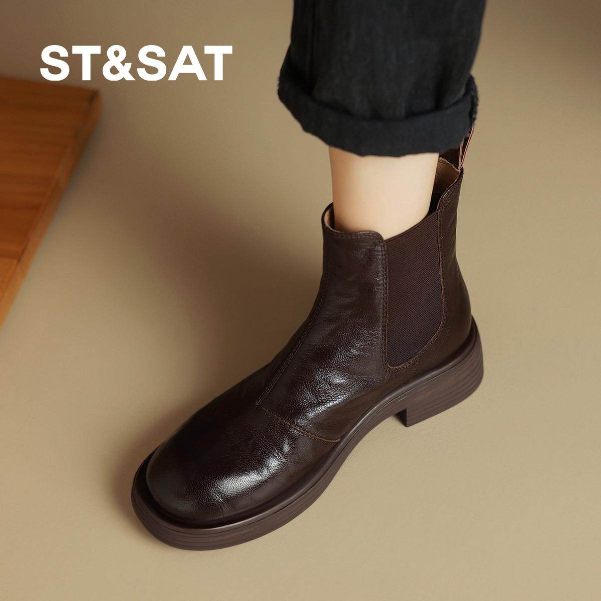 St&Sat/星期六羊皮加绒英伦马丁靴25年秋冬圆头时装靴短筒短靴女