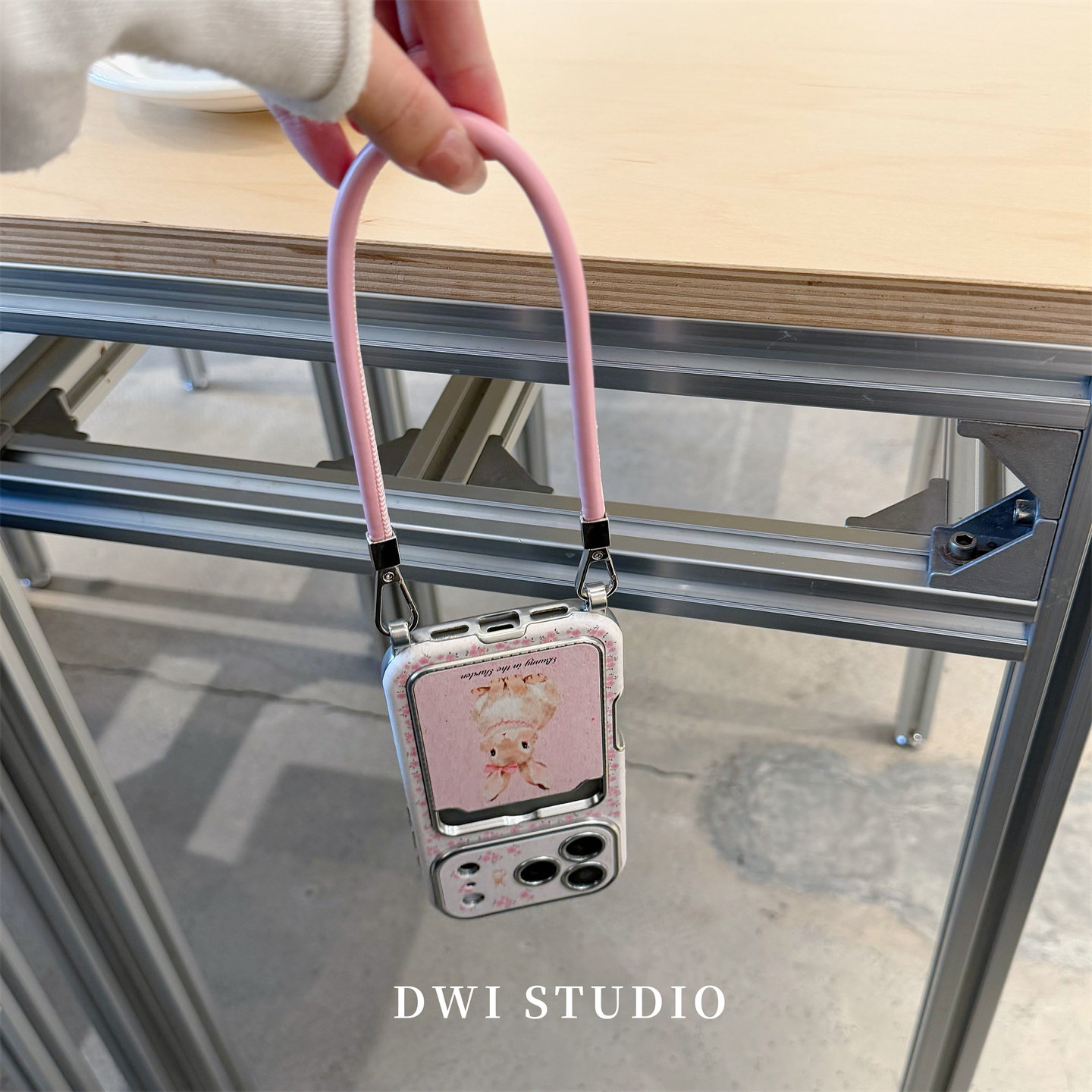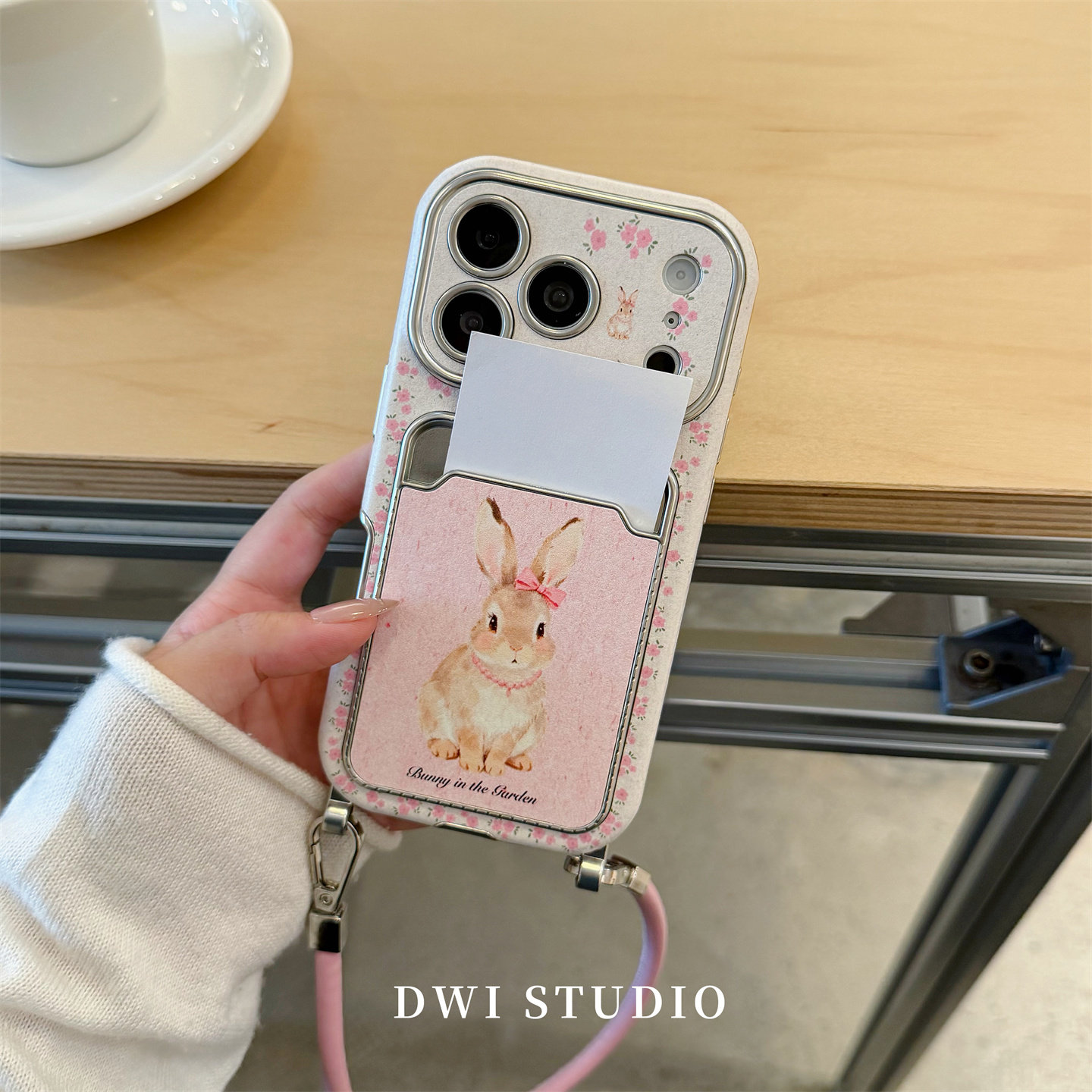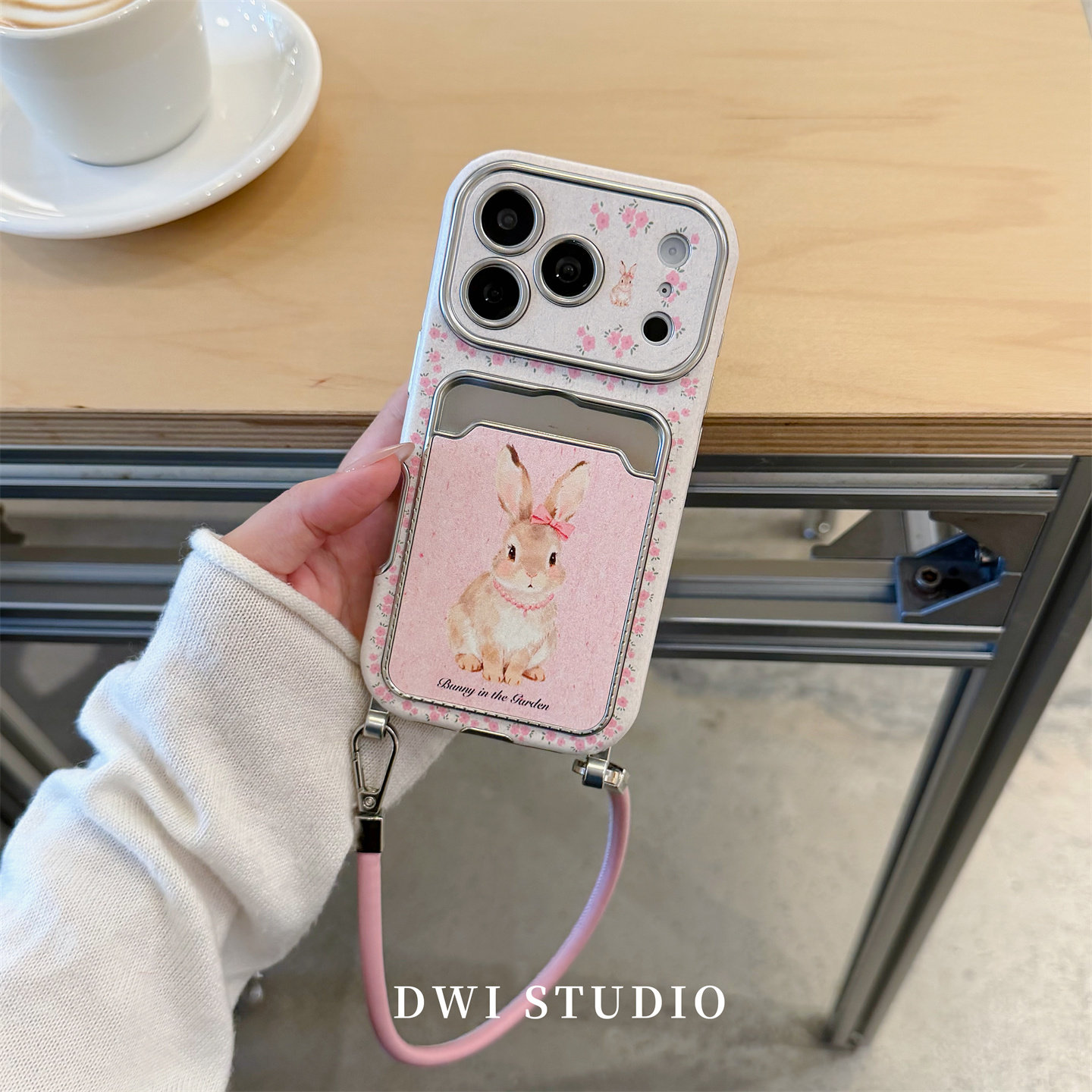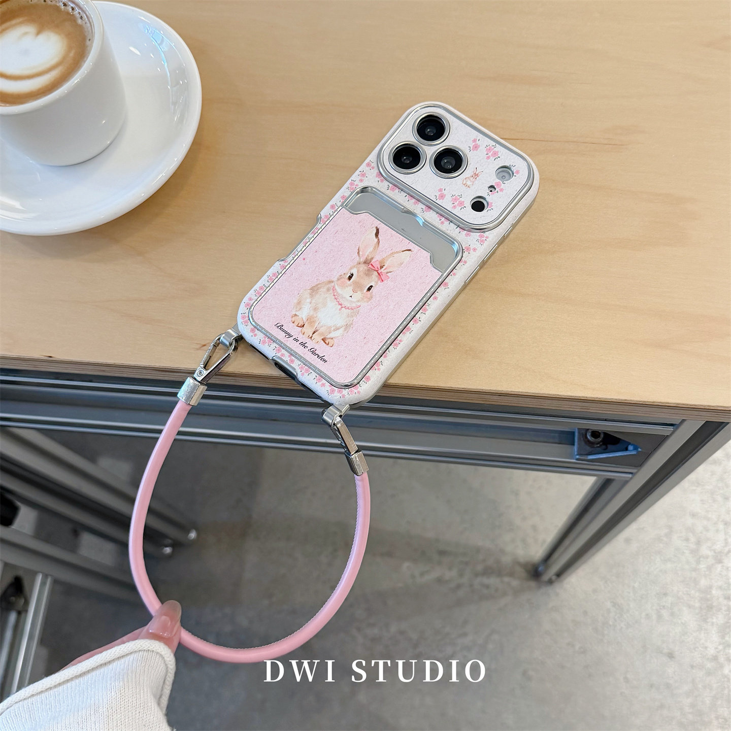 DWI STUDIO粉色可爱碎花兔兔插卡挂绳手机壳17promax适用苹果16promaxiPhone16壳15/14新款壳17