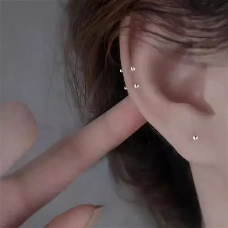 银耳钉女999纯银防过敏耳环男豆豆养耳棒耳骨钉睡觉免摘学生耳饰