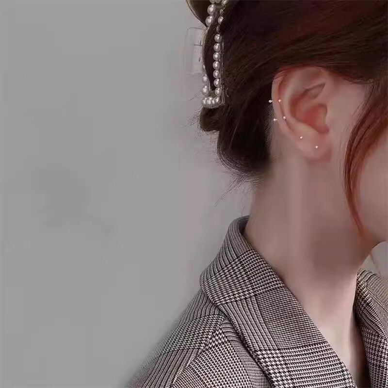 999纯银耳钉女养耳洞耳骨钉小众高级感锆石耳蜗钉水钻耳环银耳饰