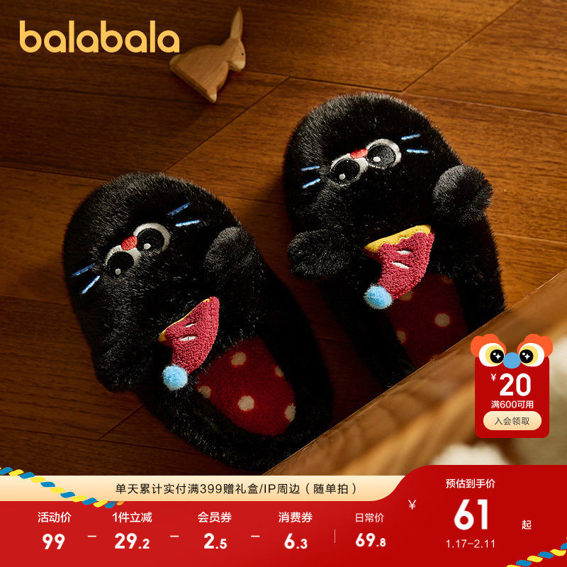巴拉巴拉儿童棉拖鞋男童女童2025冬季新款宝宝室内保暖毛绒家居鞋