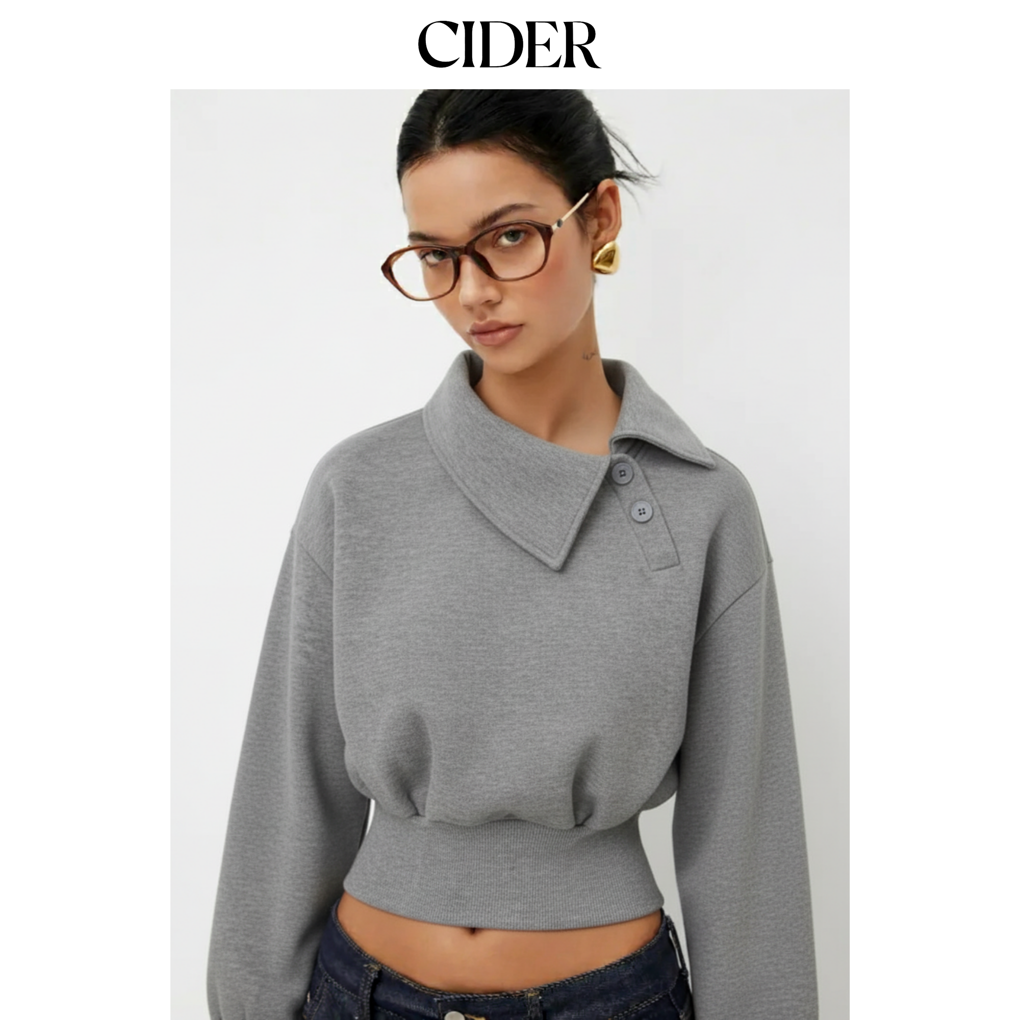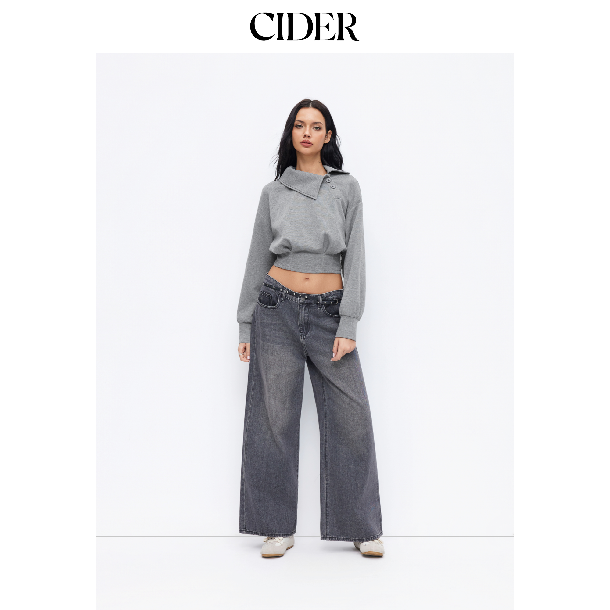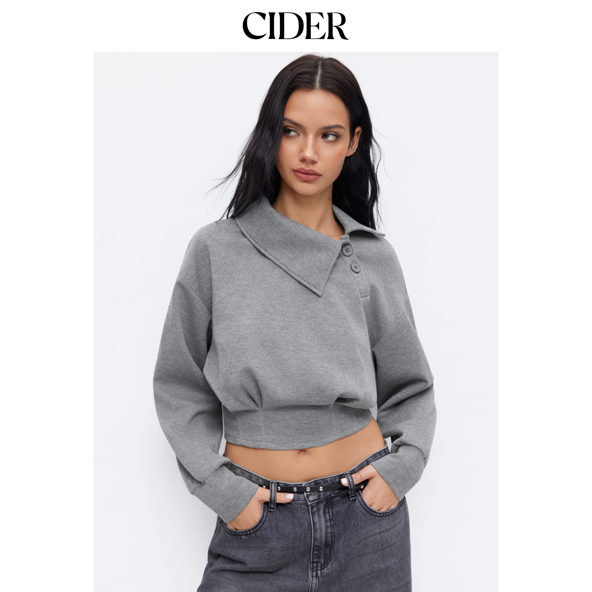 CIDER 秋冬新品女装不对称领口长袖束腰卫衣114861527