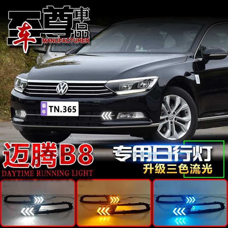 适用于17-19款大众迈腾B8专用日行灯前雾灯改装LED流光日间行车灯