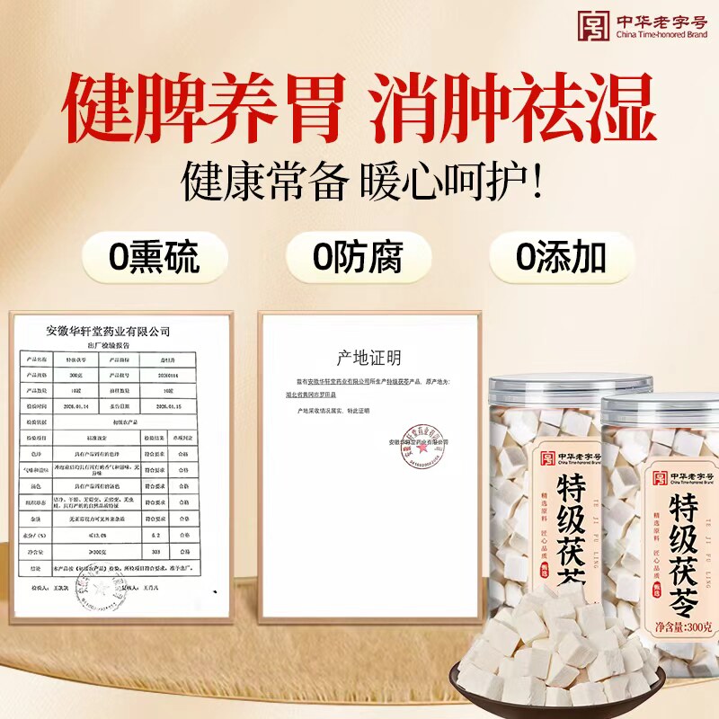 特级白茯苓中药材正品官方旗舰店大块野生茯苓芡实健脾祛湿调理