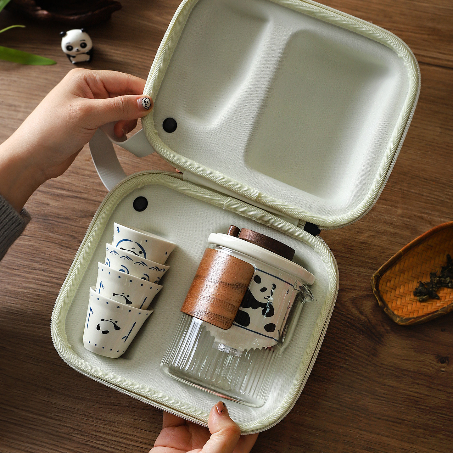 舍里可爱功夫茶具套装便携旅行茶具茶杯茶壶组合户外一人饮快客杯