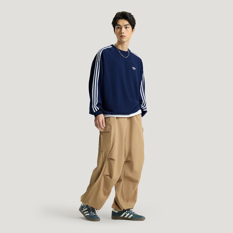 阿迪达斯三叶草男棉质篮球风运动宽松长袖圆领卫衣套头衫 KG3899