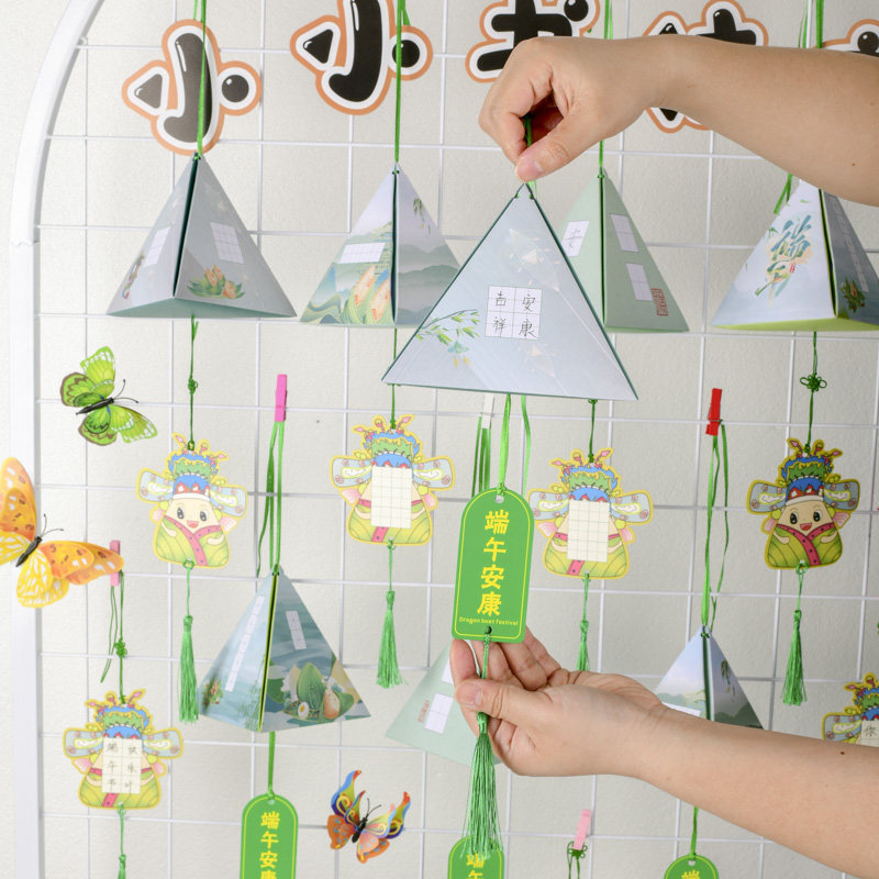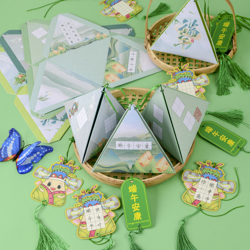 创意端午节主题硬笔书法作品纸书写练字粽叶古诗卡纸小学生幼儿园儿童DIY自制手工立体材料粽子折纸挂件贺卡