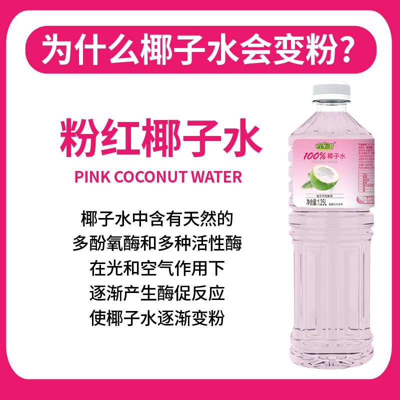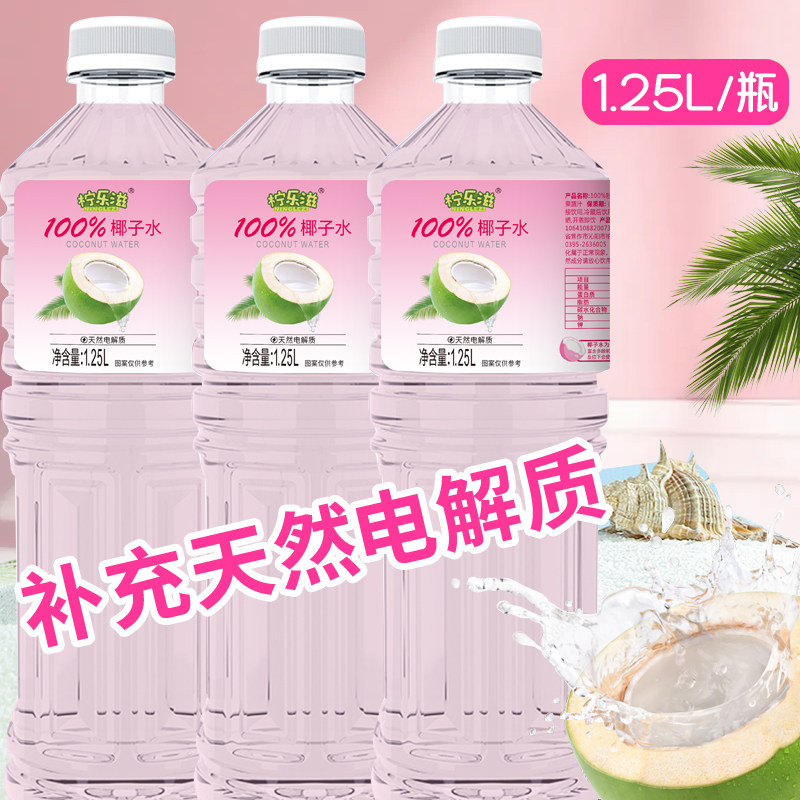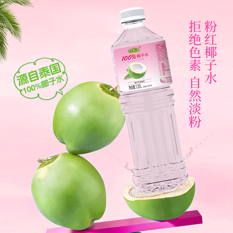 100%粉椰子0添加0蔗糖水0脂肪天然电解质清爽解腻无菌冷罐装1.25L