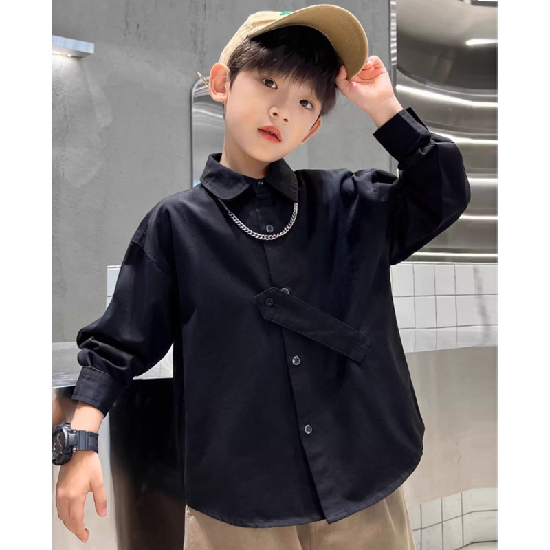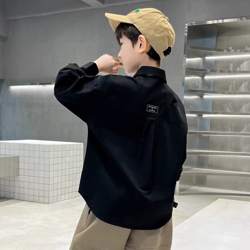 男童衬衫长袖新款童装外套春秋季中大童休闲上衣2026时尚衬衣帅气