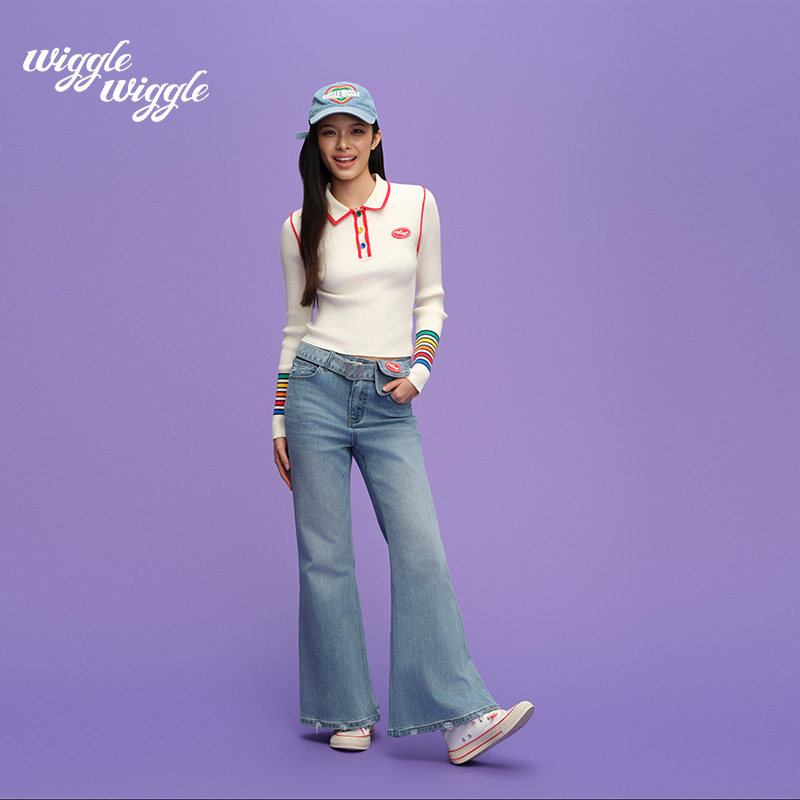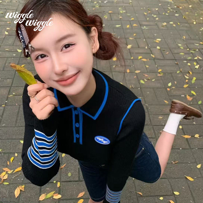 wigglewiggle26年撞色休闲潮流修身内搭翻领毛衣女装