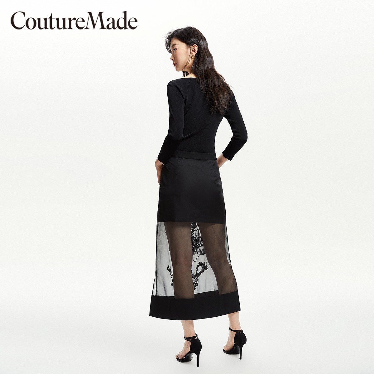 Vero Moda奥莱半身裙秋季新款直筒网纱钉珠中国风时尚裙子流行