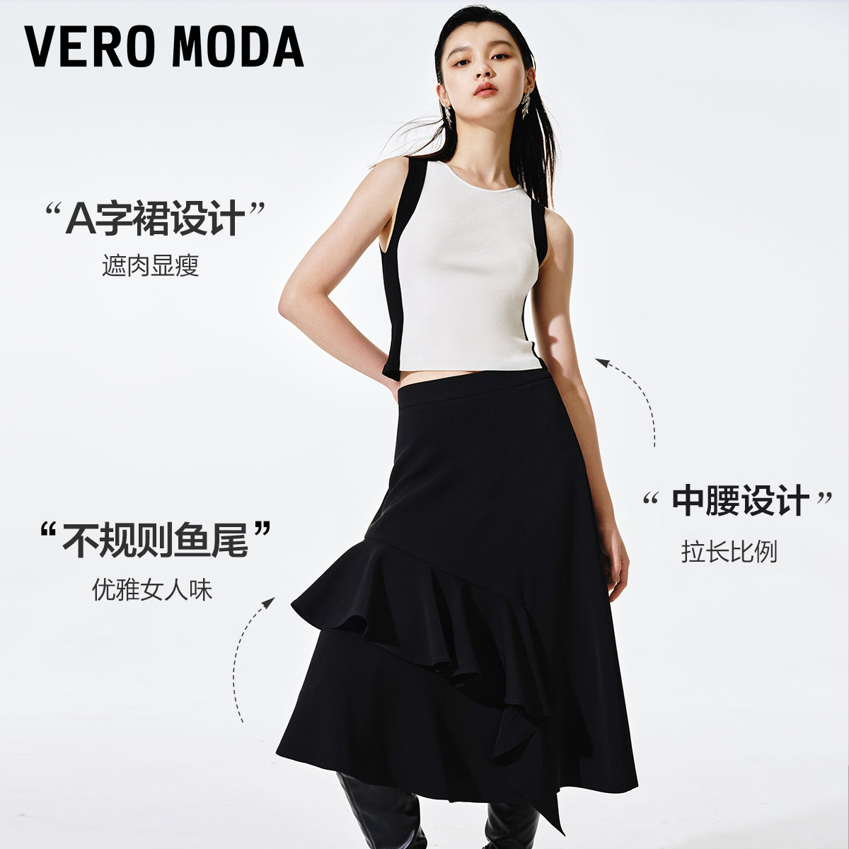 Vero Moda奥莱半身裙秋冬清仓中腰不规则A字裙优雅气质百搭女流行