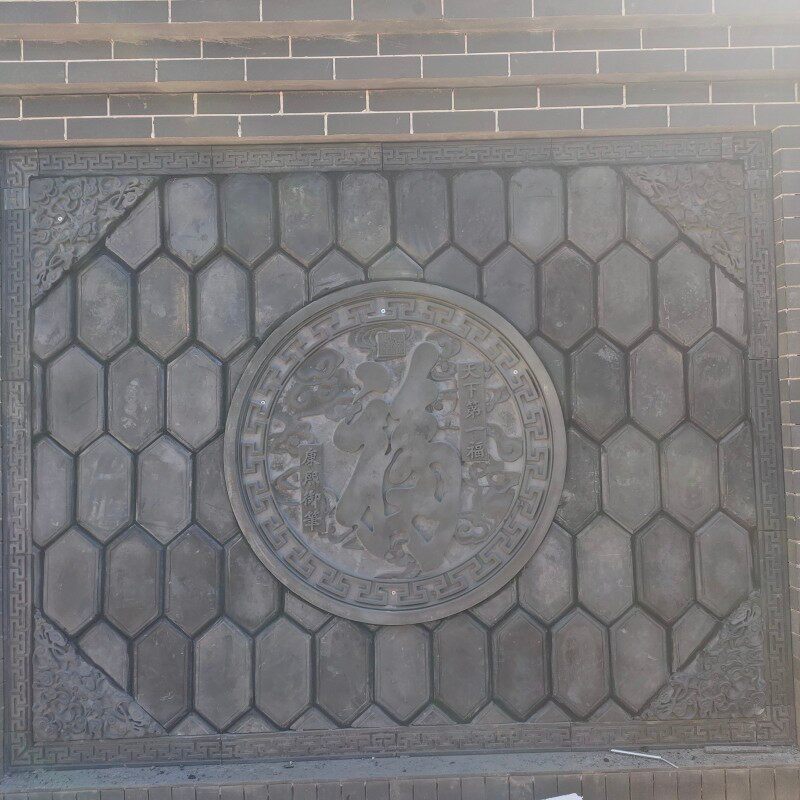 镂空砖雕圆形仿古花窗影壁墙挂件直径1米五福捧寿浮雕中式照壁画