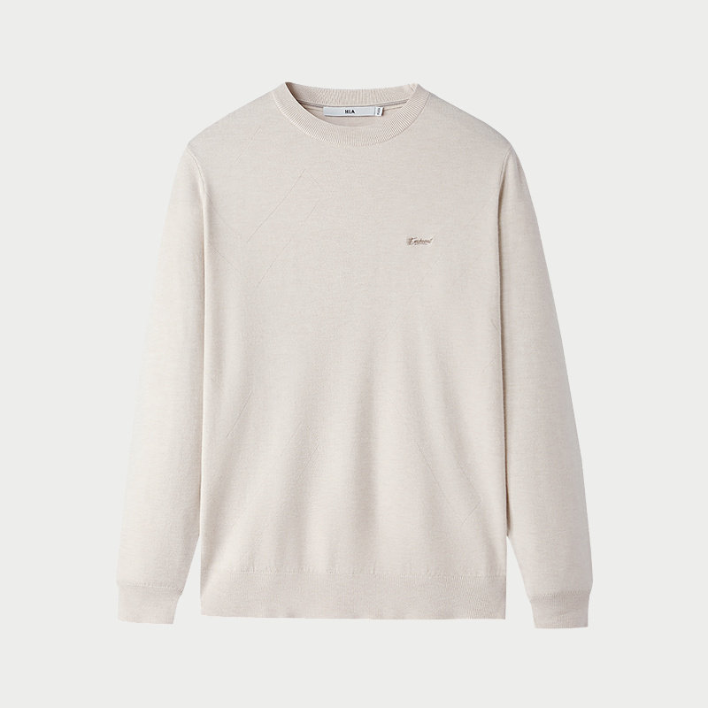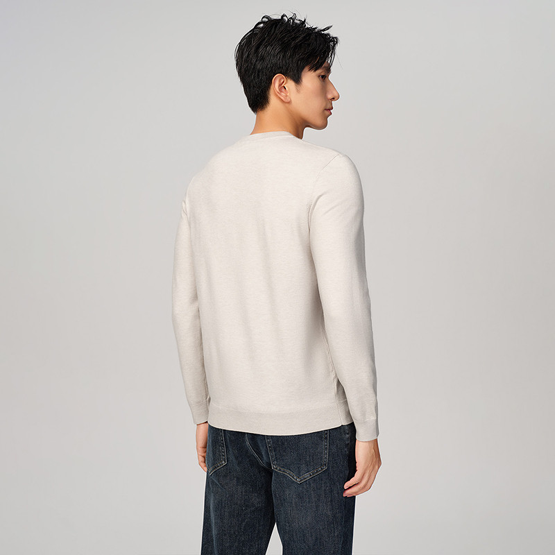 HLA/海澜之家燕麦色长袖针织衫25秋冬新款修身包芯纱保暖薄毛衣男